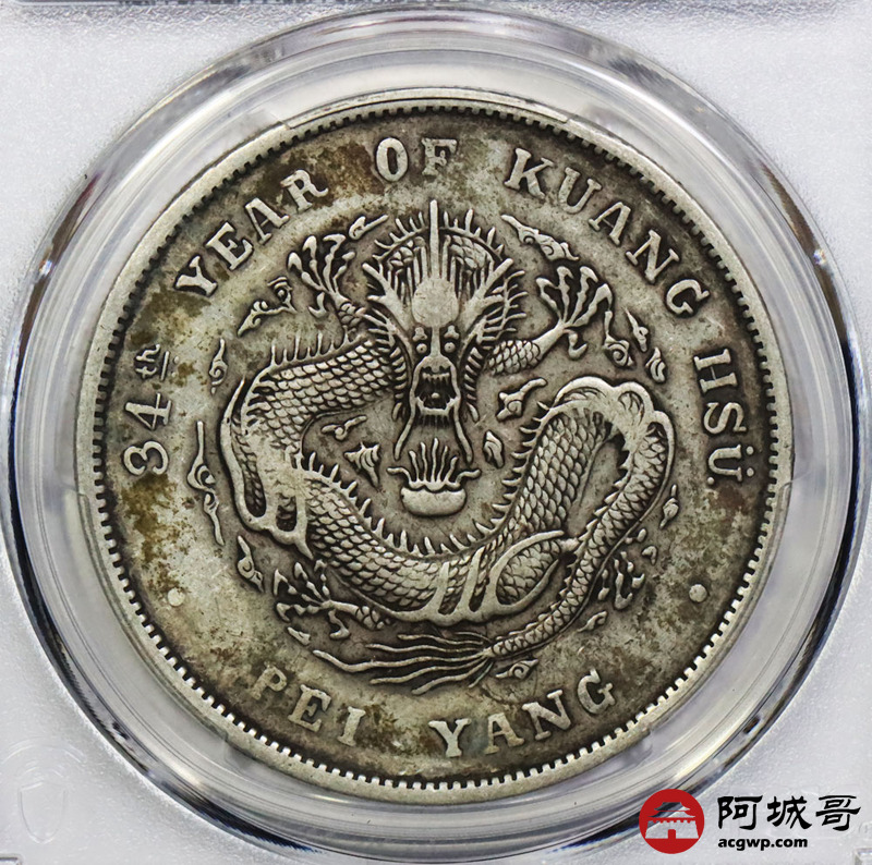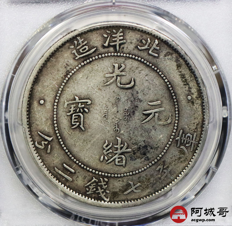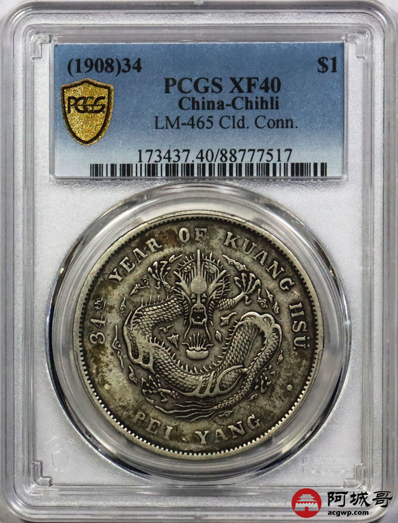 Lot:1755 1908光绪三十四年北洋造光绪元宝库平七钱二分银币一枚,原味 PCGS XF40评级编号:88777517