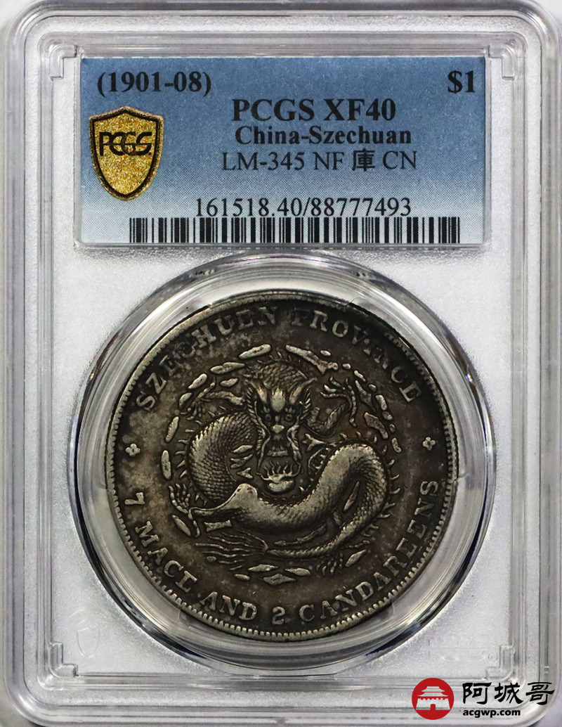 Lot:1423 1901-08年四川省造光绪元宝库平七钱二分银币一枚,老包浆 PCGS XF40评级编号:88777493