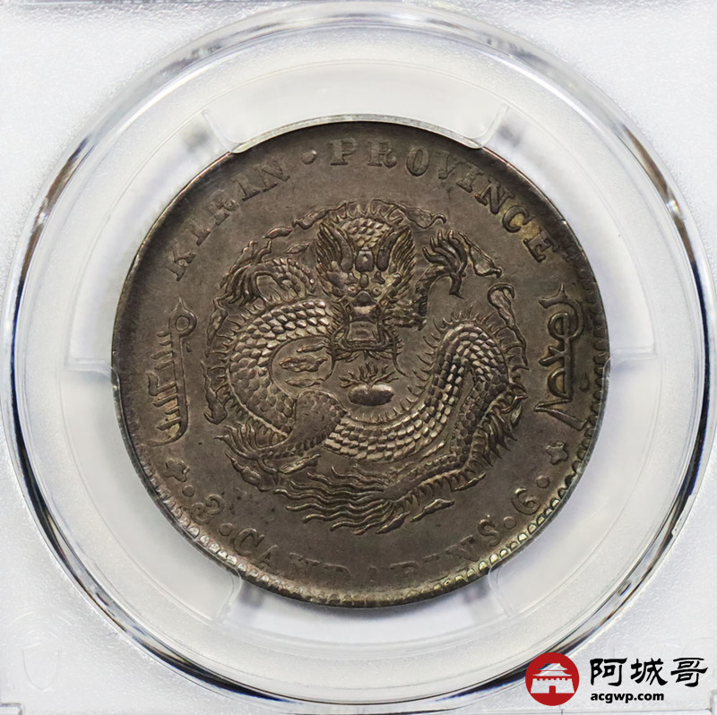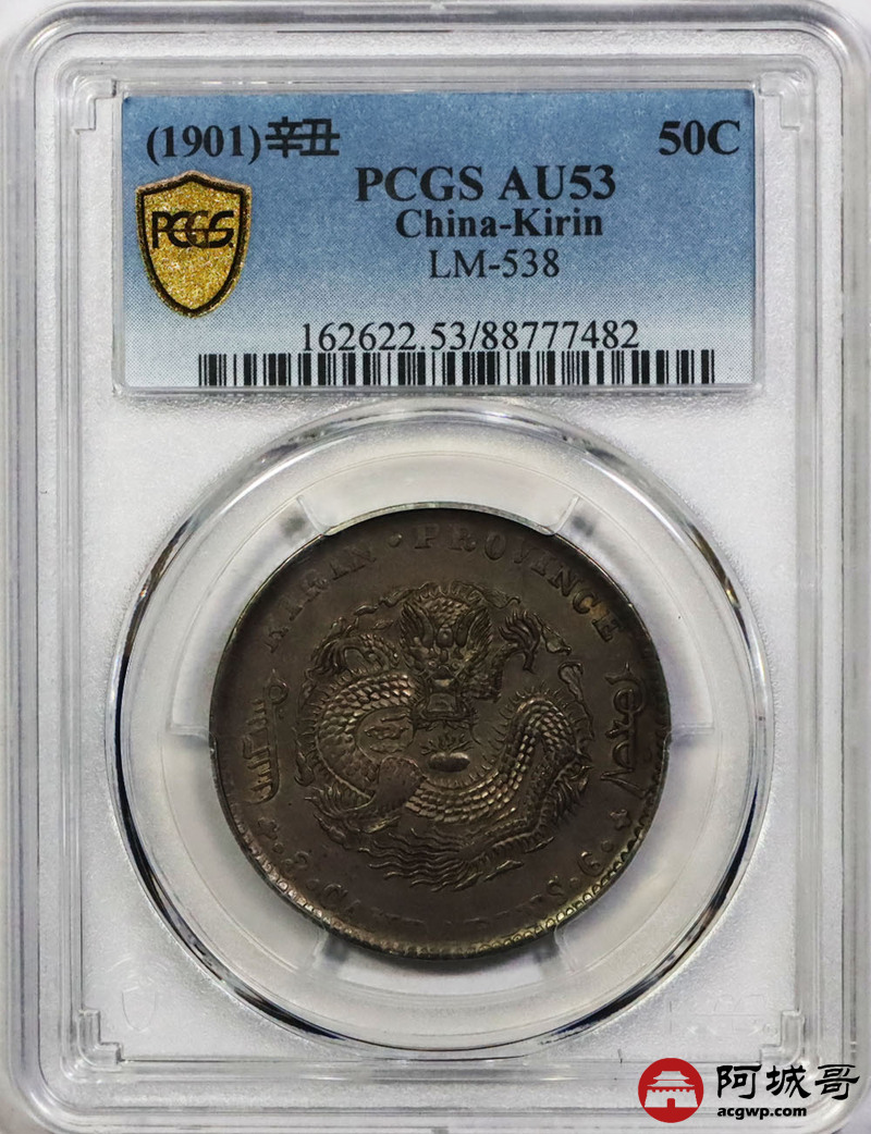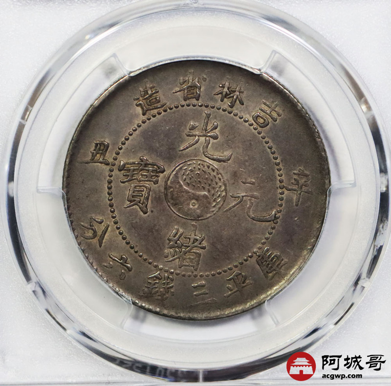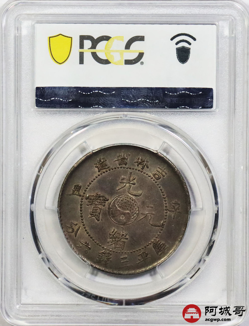 Lot:1409 1901辛丑年吉林省造光绪元宝库平三钱六分银币一枚,巧克力包浆 PCGS AU53评级编号:88777482