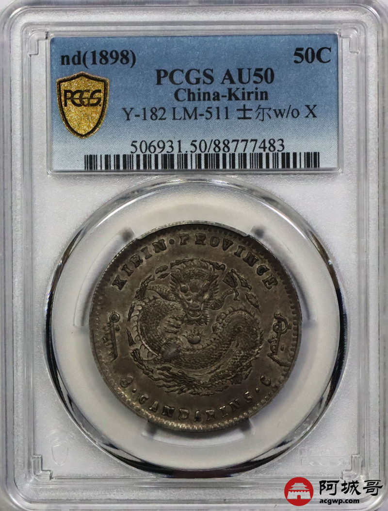 Lot:1401 1898年吉林省造光绪元宝库平三钱六分银币一枚,原味 PCGS AU50评级编号:88777483