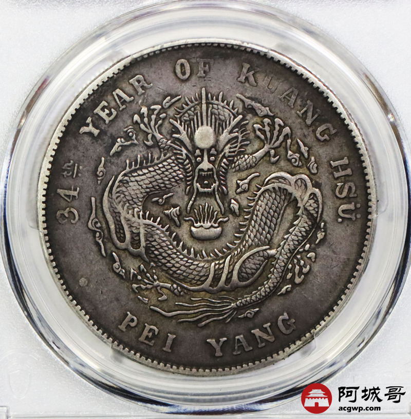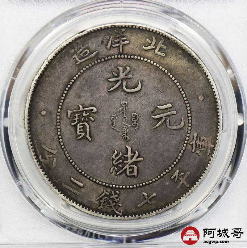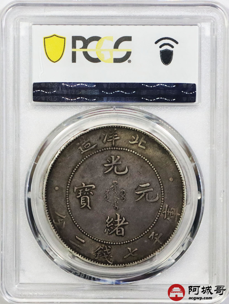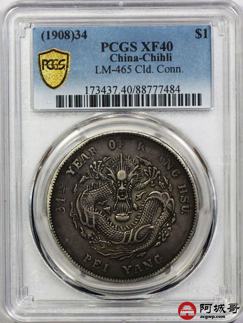 Lot:1629 1908光绪三十四年北洋造光绪元宝库平七钱二分银币一枚,咖色老包浆 PCGS XF40评级编号:88777484