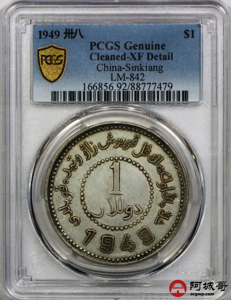 Lot:1453 1919民国三十八年新疆省造币厂铸壹圆银币一枚,原味深打 PCGS XF92评级编号:88777479