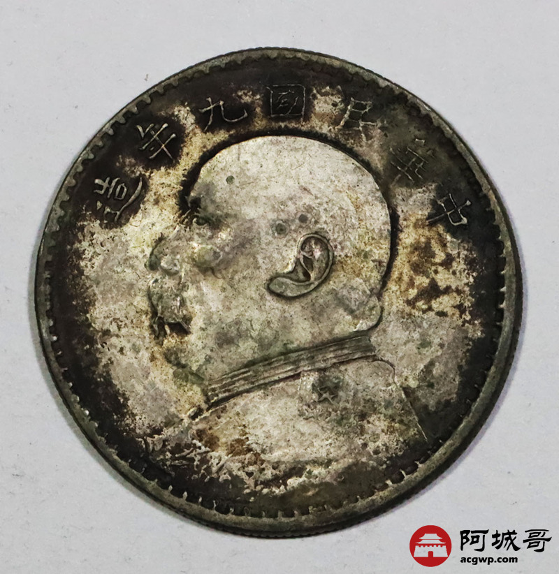 Lot:1803 民国九年袁世凯像壹元银币一枚 ,私铸,原味