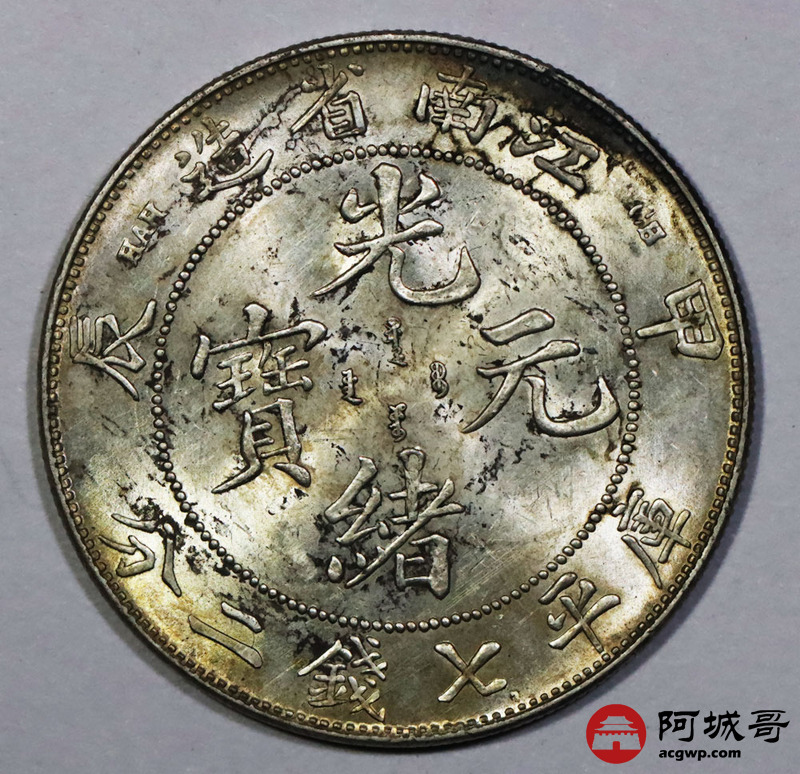 Lot:1799 1904甲辰年江南省造光绪元宝库平七钱二分银币一枚,黄油原光,完全未使用