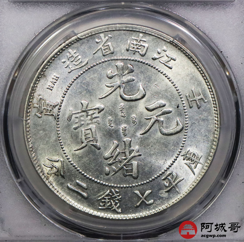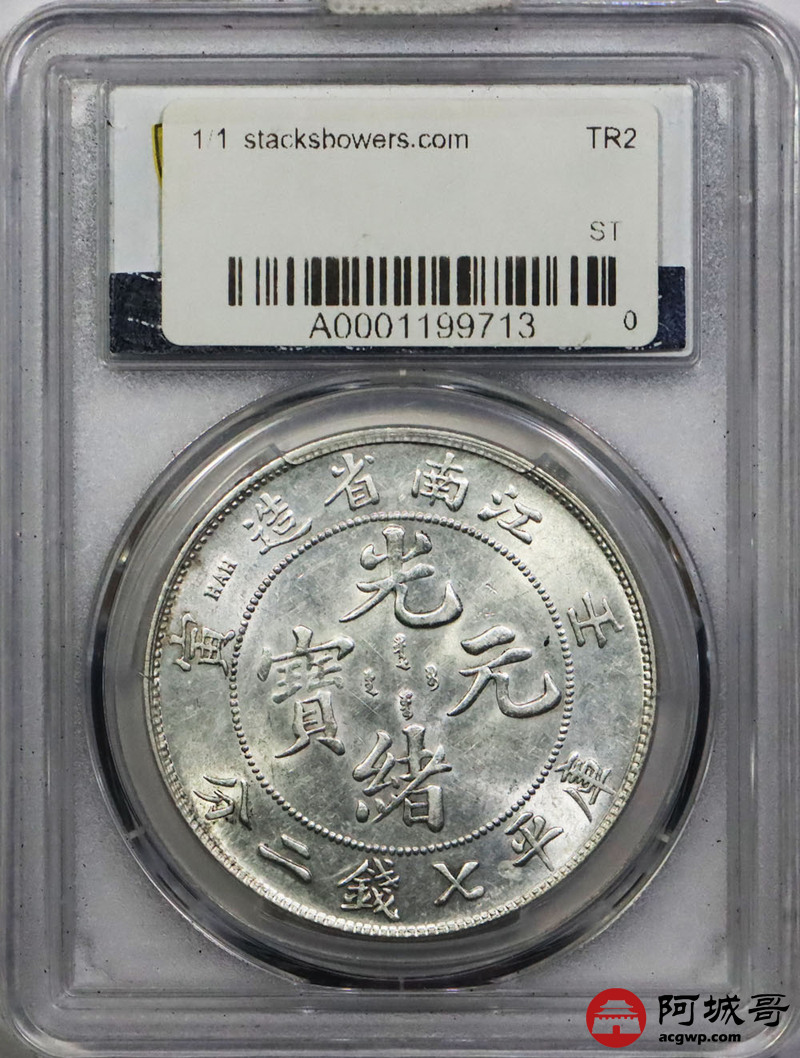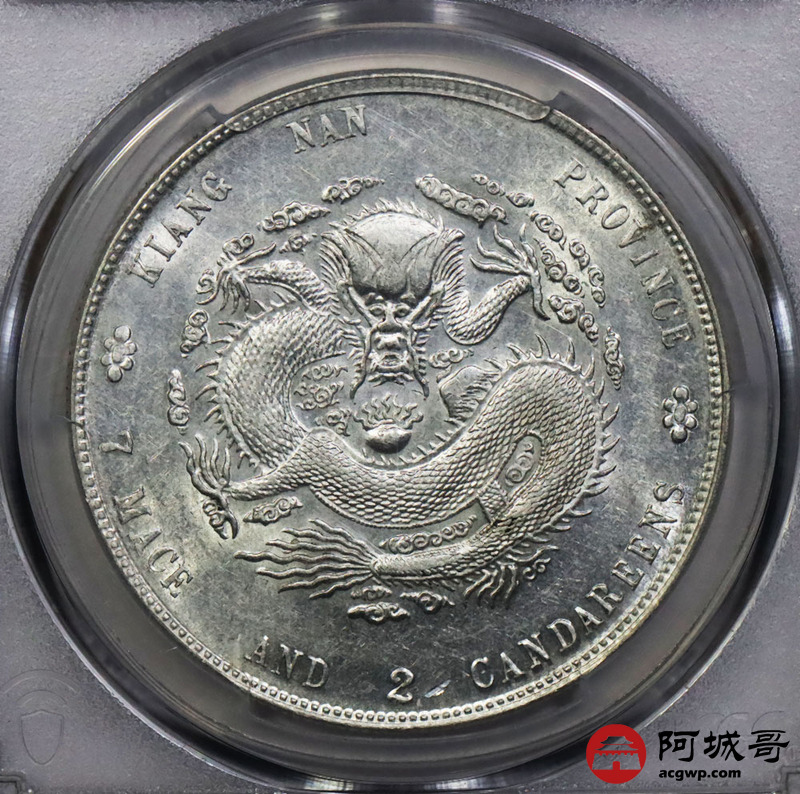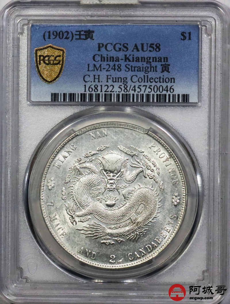 Lot:1364 1902壬寅年江南省造光绪元宝库平七钱二分银币一枚,全龙鳞,原色光 PCGS AU58评级编号:45750046