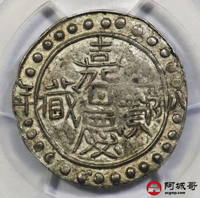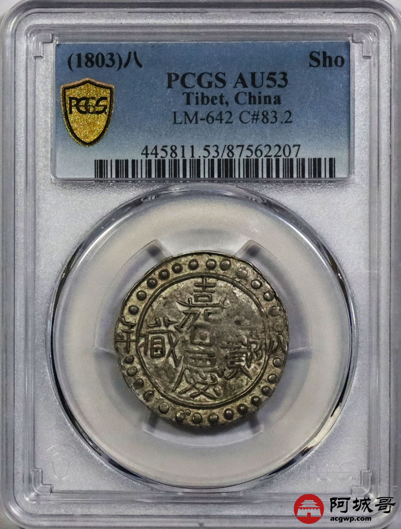 Lot:1459 1803嘉庆八年西藏嘉庆宝藏银币一枚,黄油底板 PCGS AU53评级编号:87562207