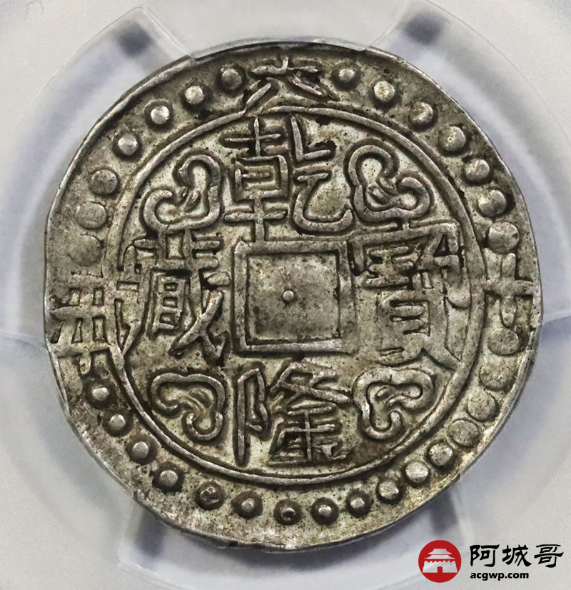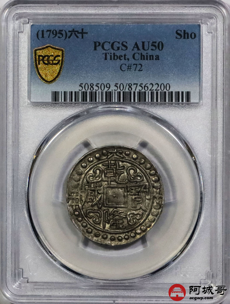 Lot:1458 1795乾隆六十年西藏乾隆宝藏银币一枚,原味 PCGS AU50评级编号:87562202
