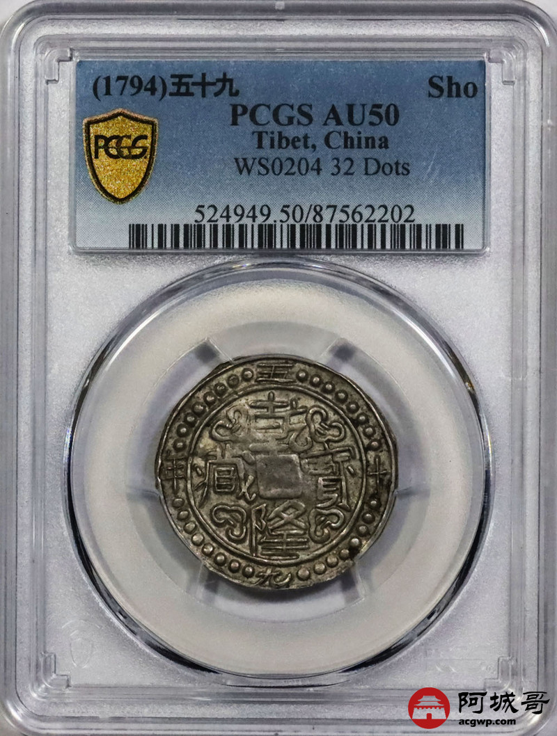 Lot:1460 1794乾隆五十九年西藏乾隆宝藏银币一枚,原味 PCGS AU50评级编号:87562202