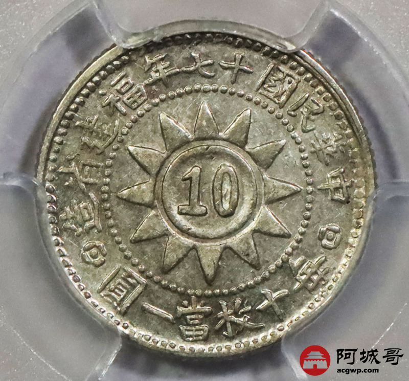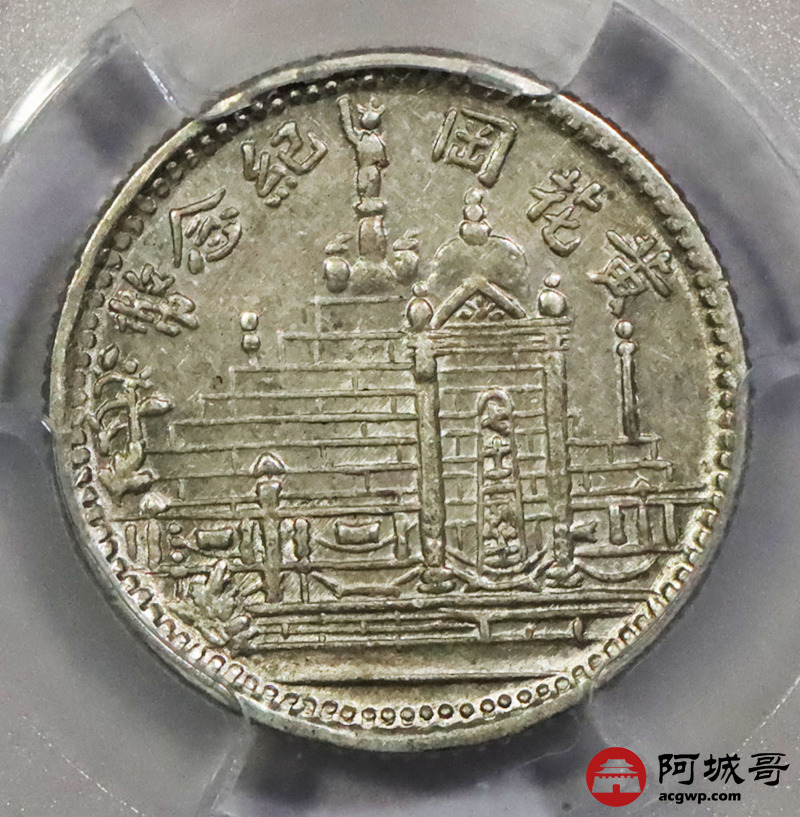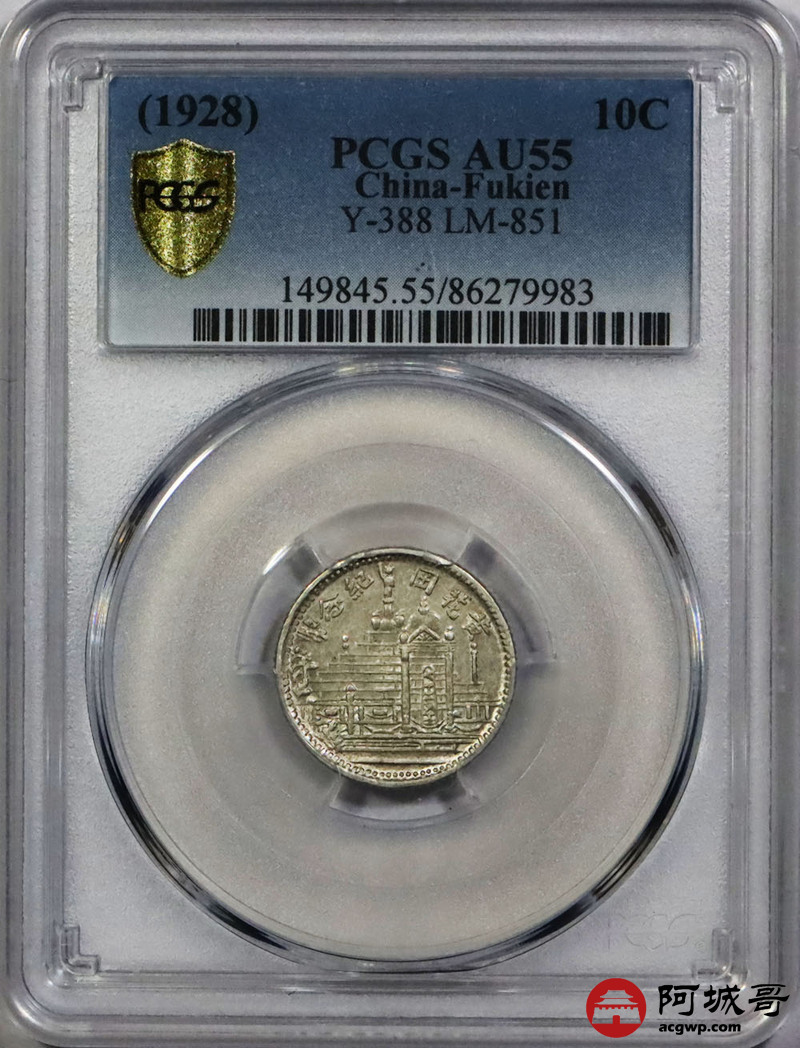 Lot:1400 1928民国十七年黄花岗纪念一角银币一枚,黄油底板 PCGS AU55评级编号:86279983