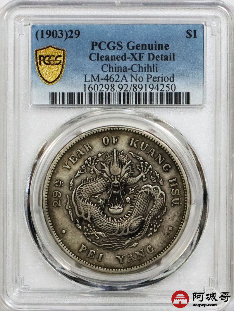 Lot:1628 1903光绪二十九年北洋造光绪元宝库平七钱二分银币一枚, 原味老包浆 PCGS XF92评级编号:89194250