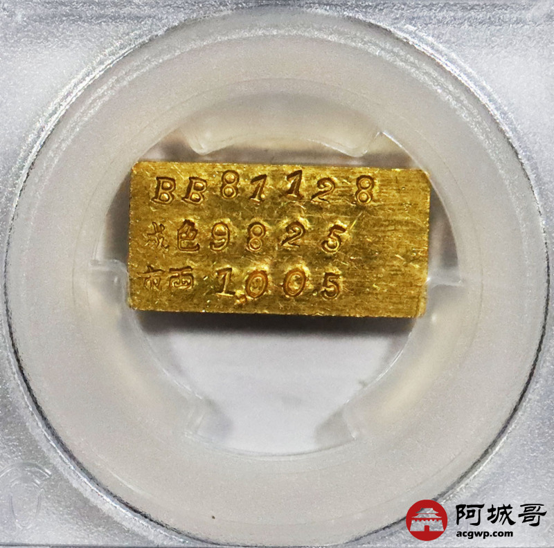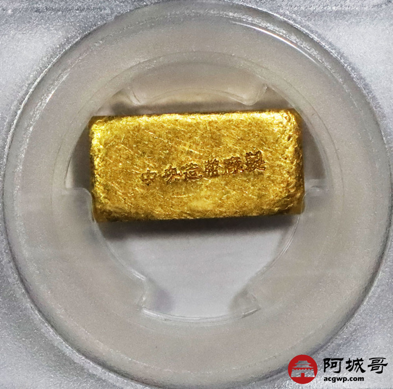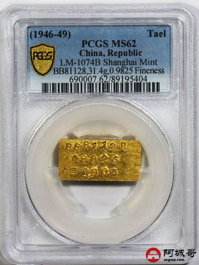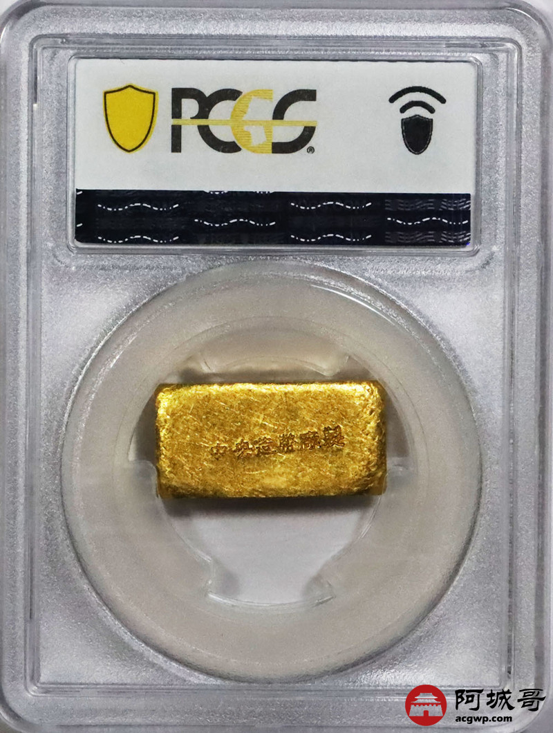 Lot:1498 1946-49年民国时期上海中央造币厂一两金厂条一枚,31.4g PCGS MS62评级编号:89195404