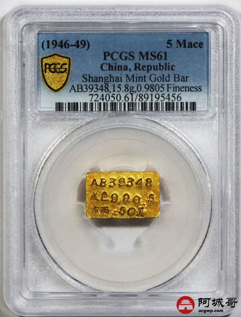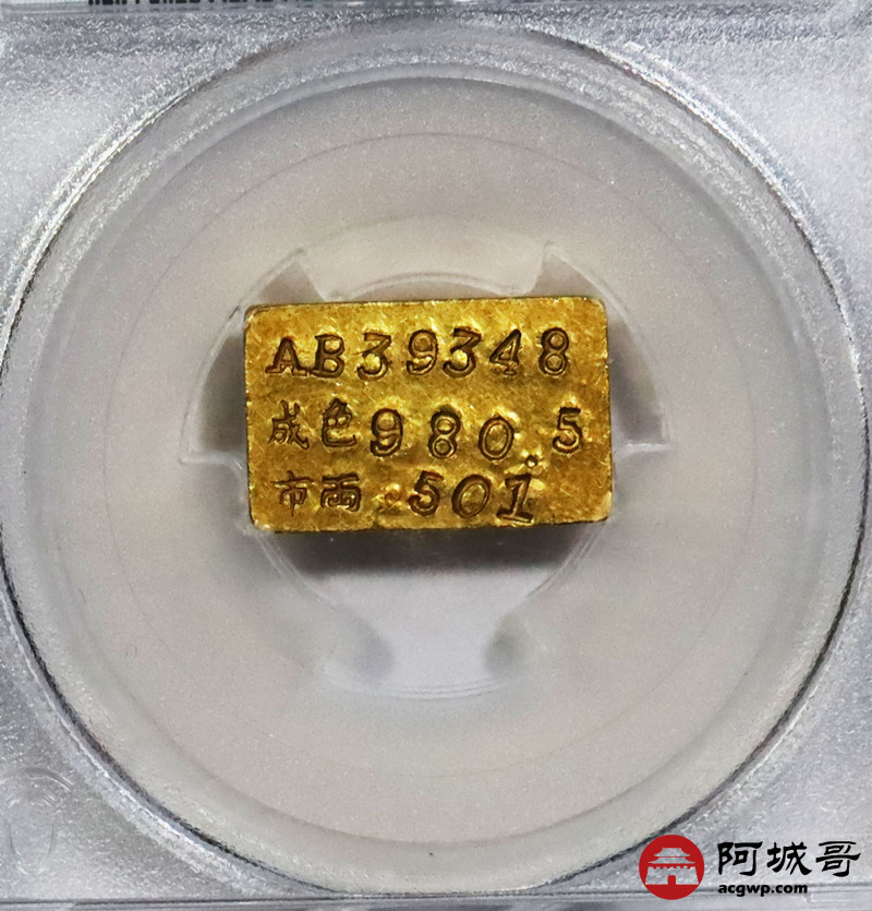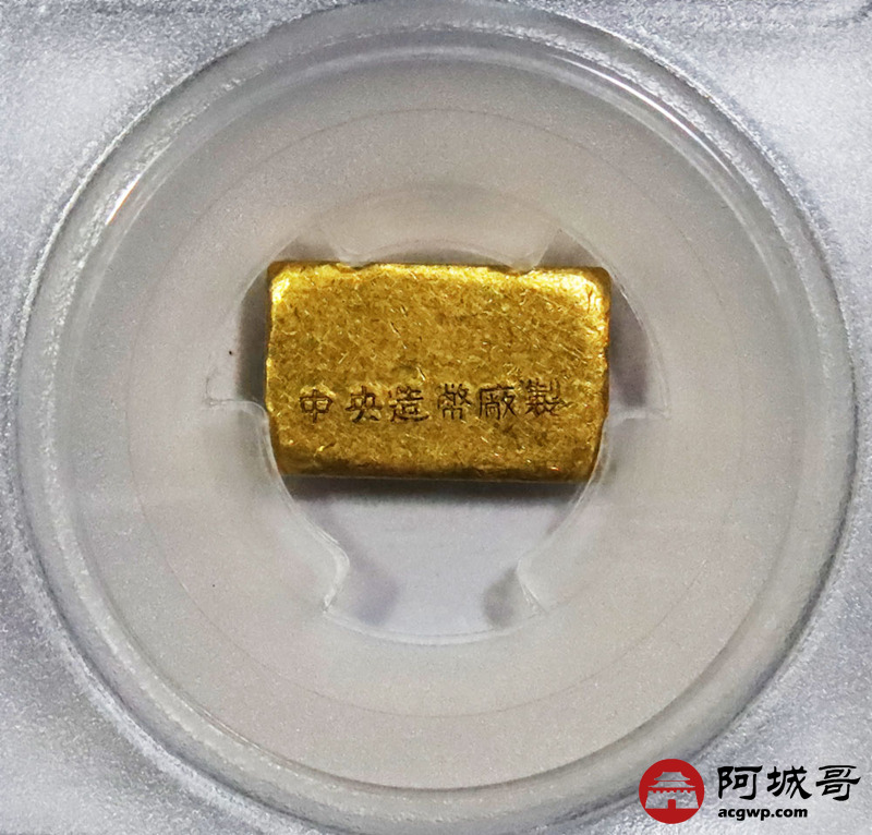 Lot:1516 1946-49年民国时期上海中央造币厂半两金厂条一枚,15.8g PCGS MS61评级编号:89195456