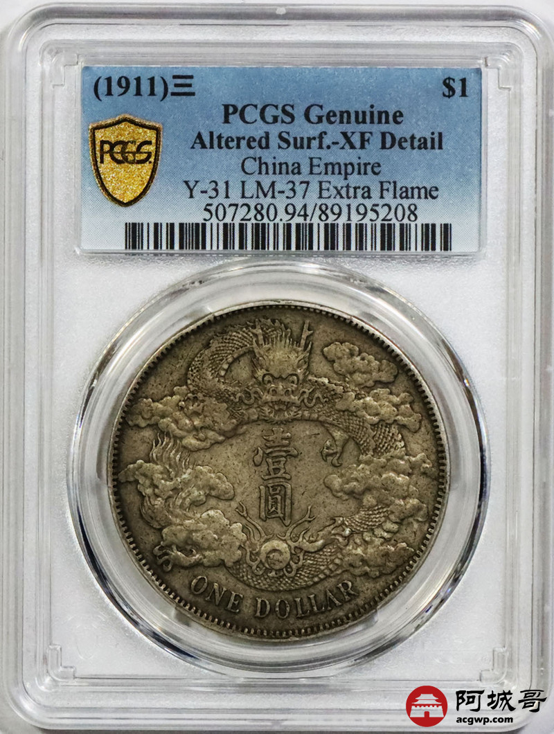 Lot:1825 1911宣统三年大清壹圆银币一枚,原味 PCGS XF94评级编号:89195208