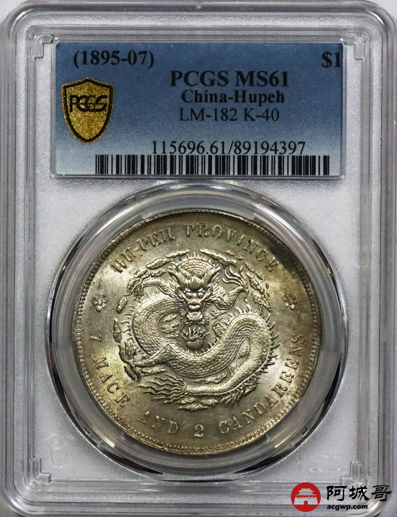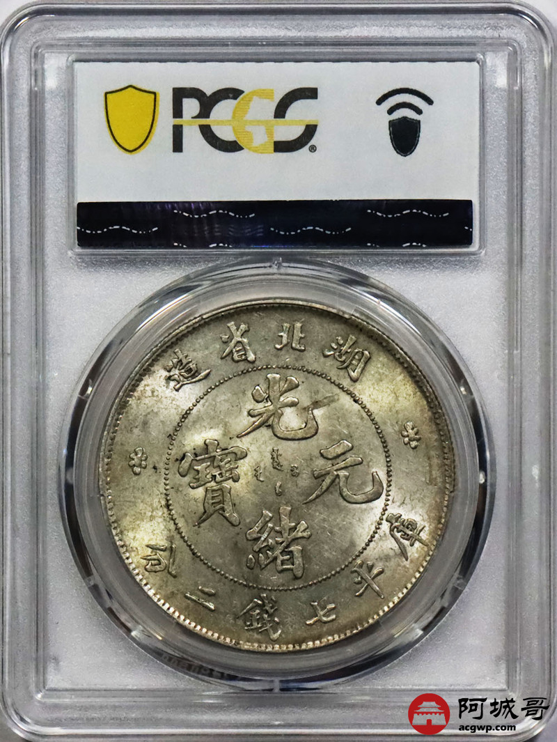 Lot:1307 1895-07年湖北省造光绪元宝库平七钱二分银币一枚,黄油底板 PCGS MS61评级编号:89194397