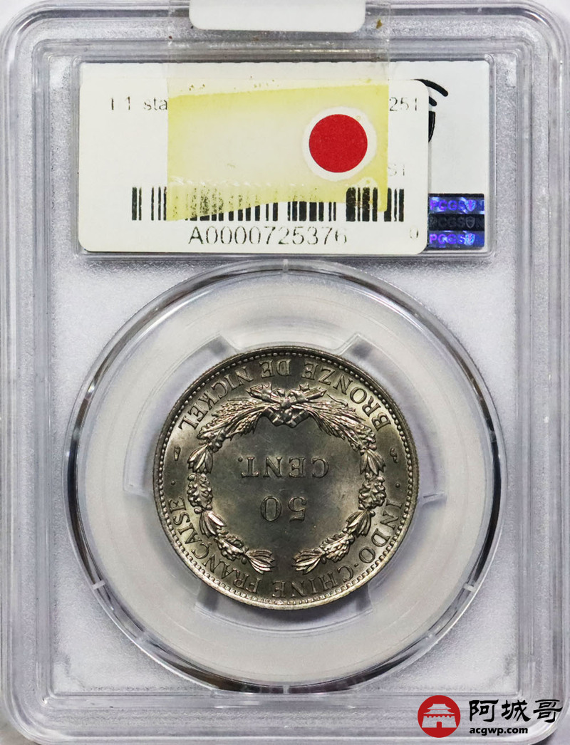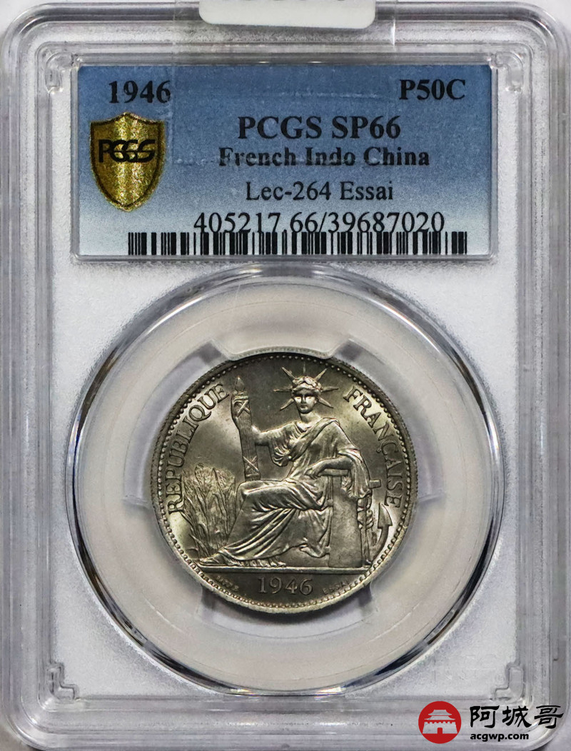 Lot:1477 1946年安南坐洋50分镍质样币一枚 PCGS SP66评级编号:39687020