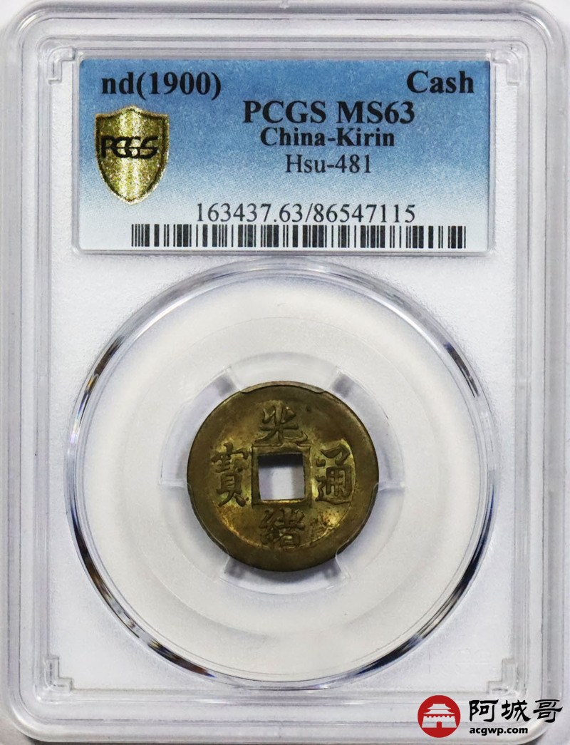 Lot:1399 1900年光绪通宝,背满文,宝蓟,机制方孔黄铜币一枚 PCGS MS63评级编号:86547115