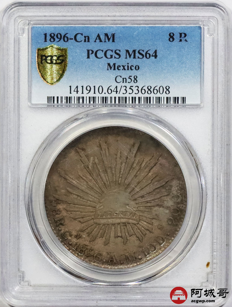 Lot:1558 1896-Cn AM墨西哥鹰洋8R银币一枚,原味 PCGS MS64评级编号:35368608