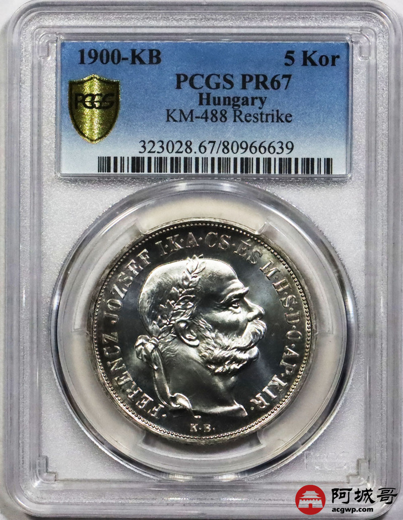 Lot:1476 1900年匈牙利5Kor银币一枚 PCGS MS67评级编号:80966639