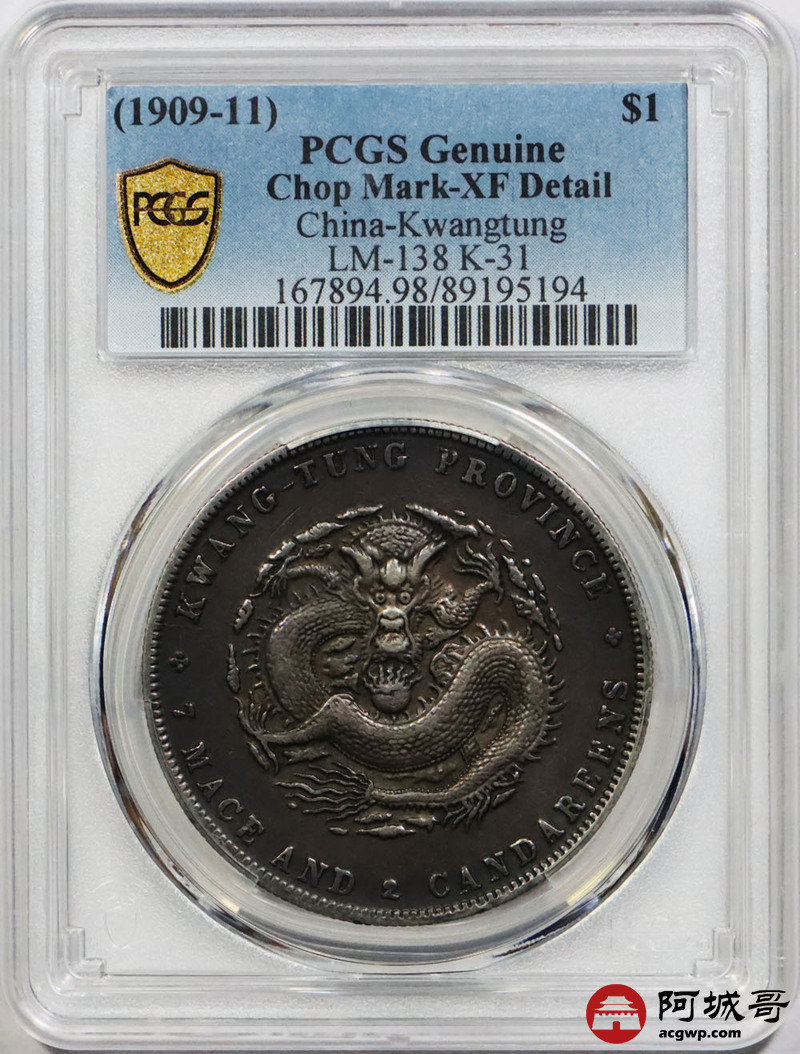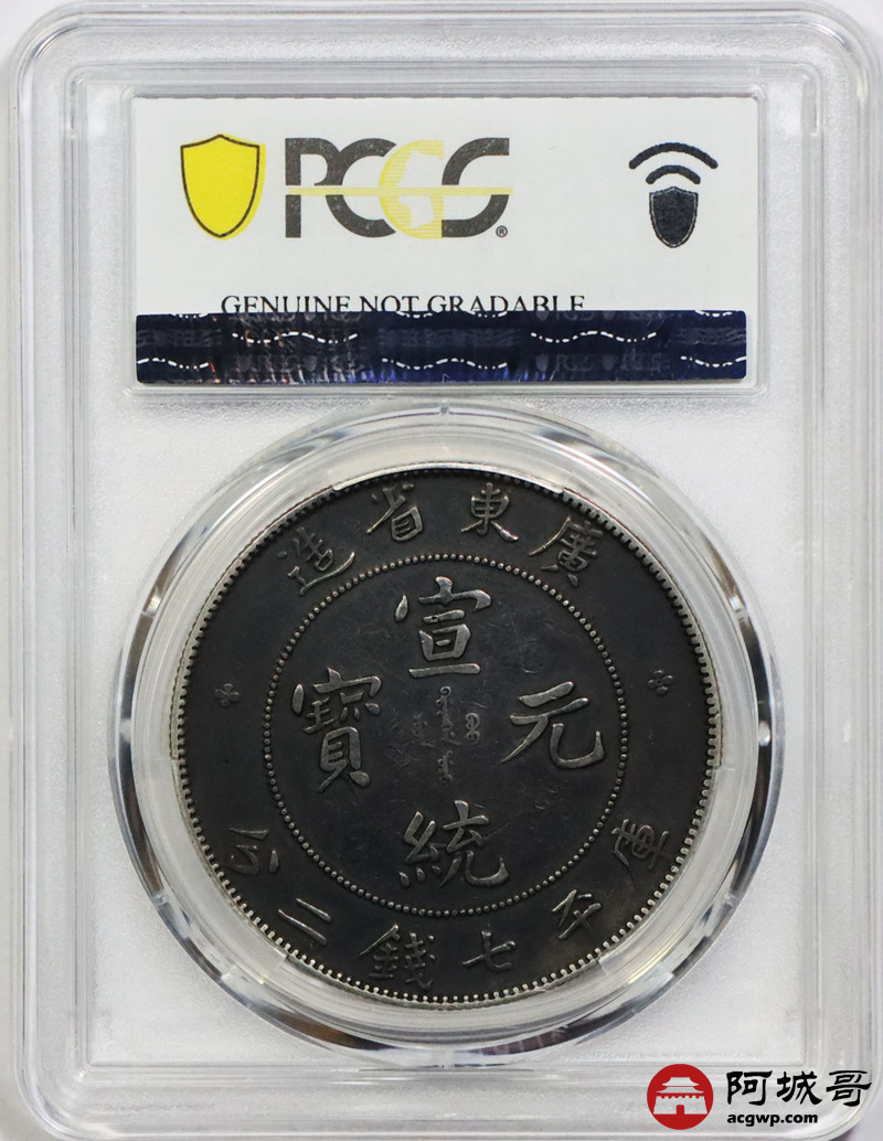 Lot:1555 1909-11年广东省造宣统元宝库平七钱二分银币一枚,氧化黑彩底板 PCGS XF98评级编号:89195194