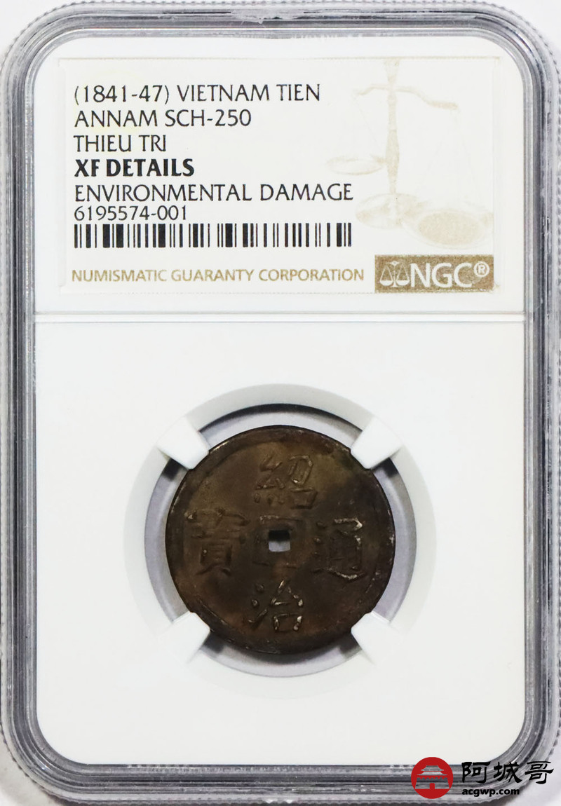 Lot:1487 1841-47年安南绍治通宝一元银币一枚 NGC XF评级编号:6195574-001