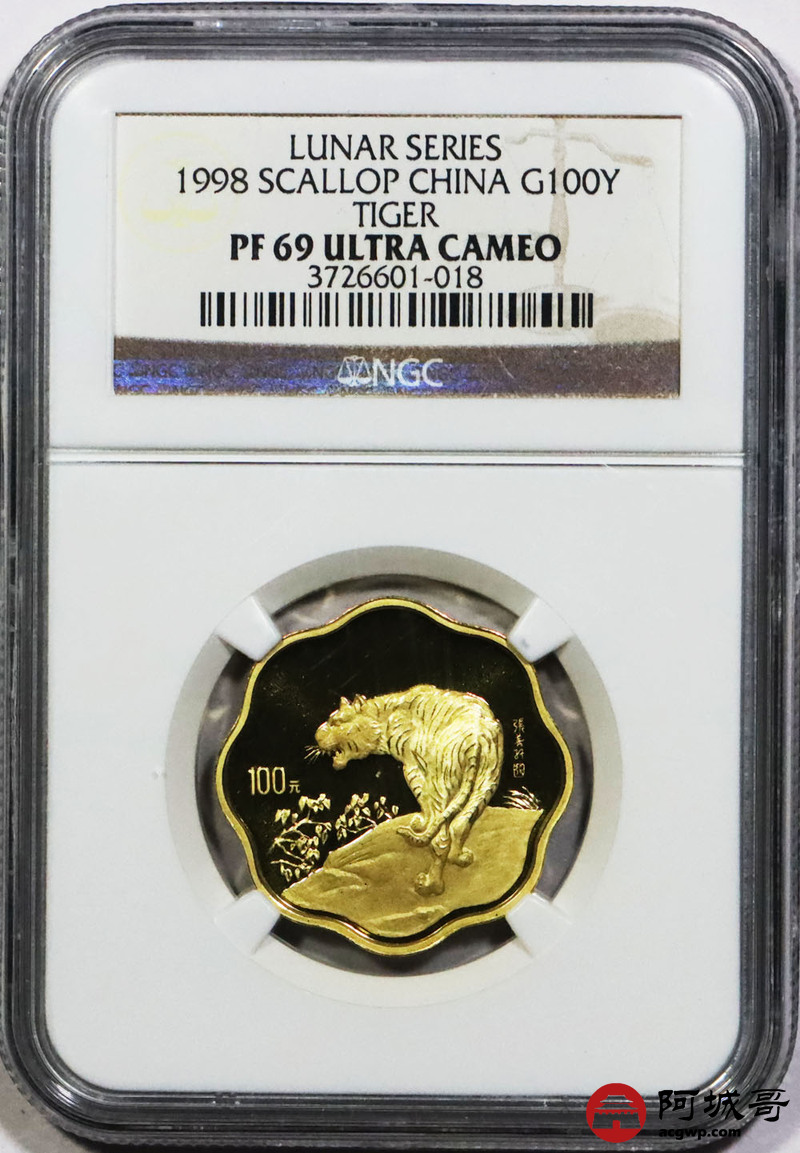 Lot:1551 1998年中国戊寅虎年生肖纪念梅花形金币一枚 NGC PF 69评级编号:3726601-018