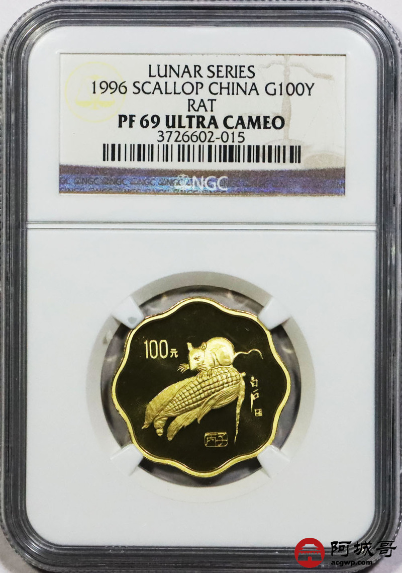 Lot:1552 1996年鼠年生肖纪念梅花形金币一枚 NGC PF69评级编号:3726602-015