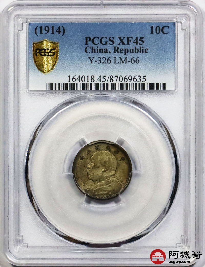 Lot:1832 1914民国三年袁世凯像壹角银币一枚,原味 PCGS XF45评级编号:87069635