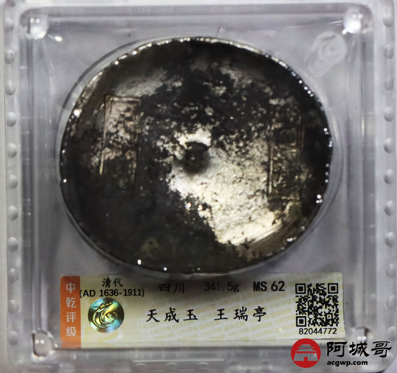 Lot:1530 清代-四川,天成玉,王瑞亭,银锭一枚,341.5g 中乾评级 MS62 评级编号:82044772