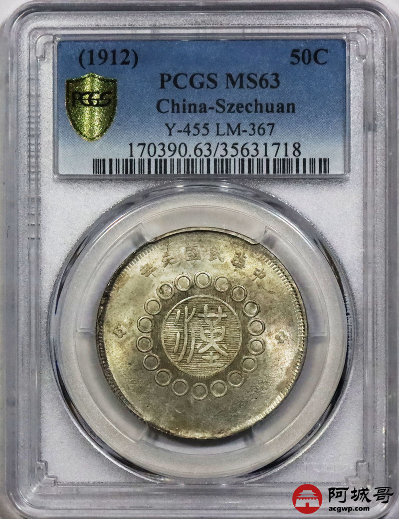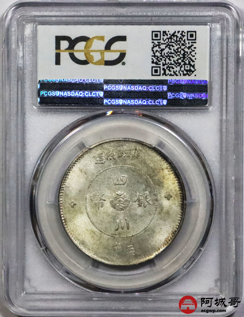 Lot:1840 1912民国元年四川军政府造伍角银币一枚,黄油彩光 PCGS MS63评级编号:35631718