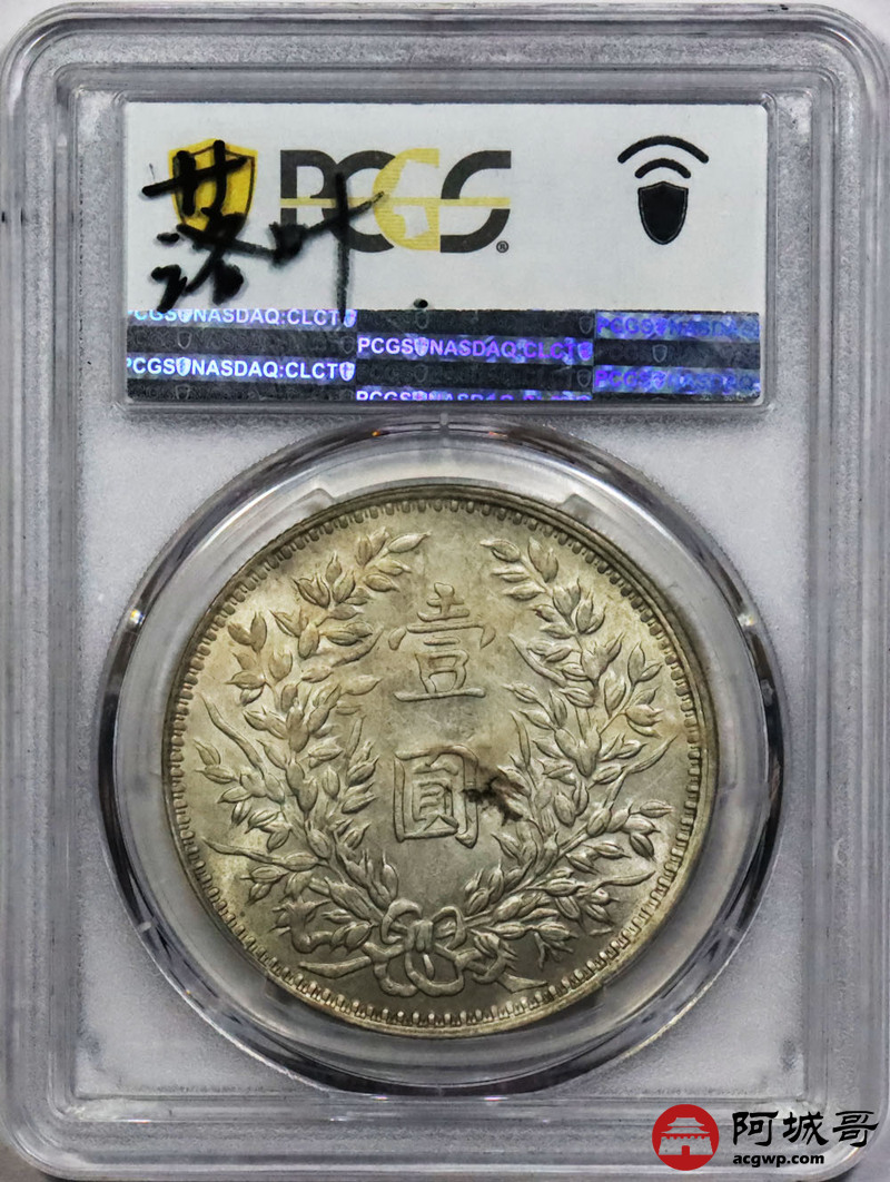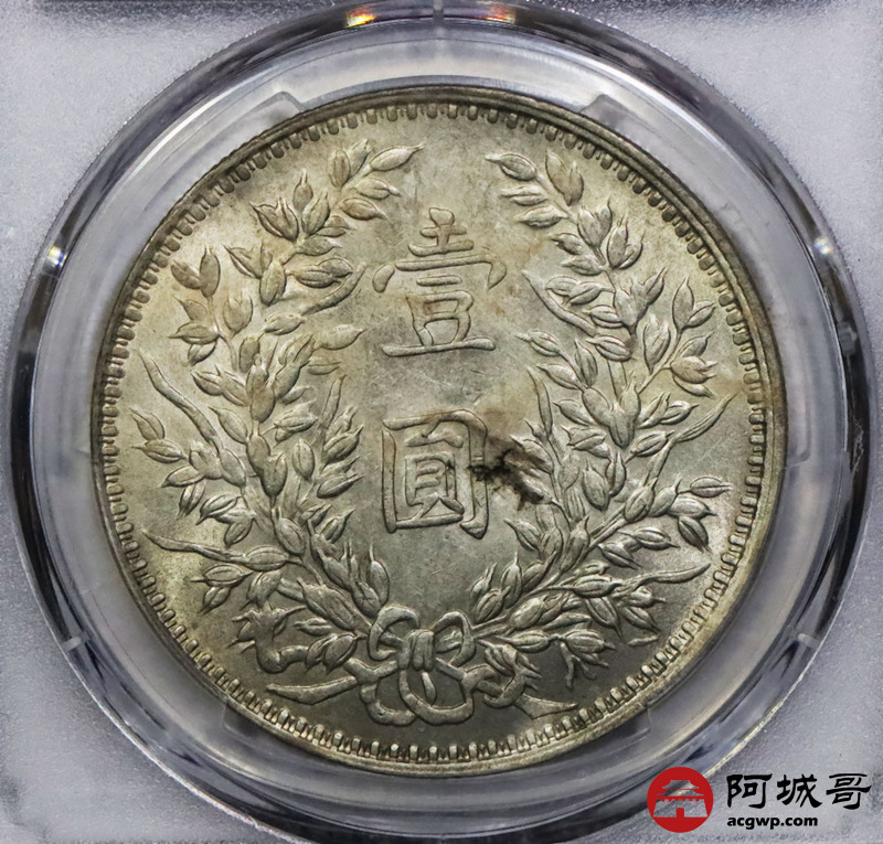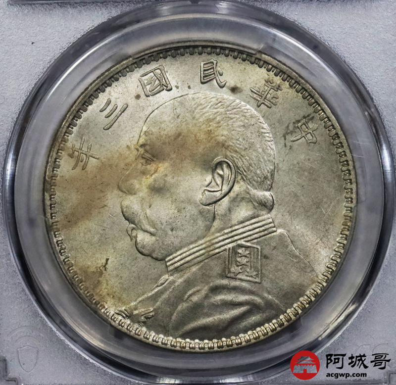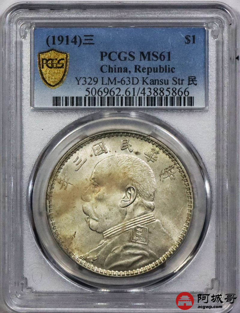 Lot:1833 1914民国三年袁世凯像壹圆银币一枚,甘肃精发大扣版,黄油底板 PCGS MS61评级编号:43885866