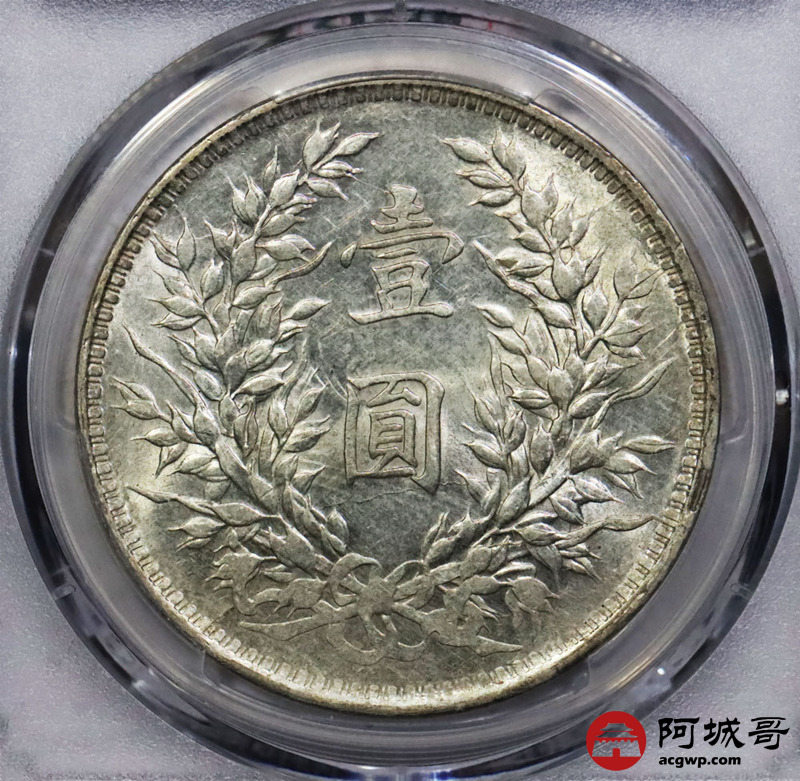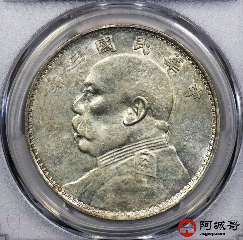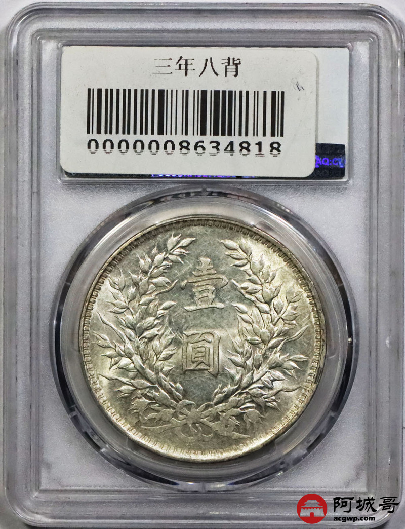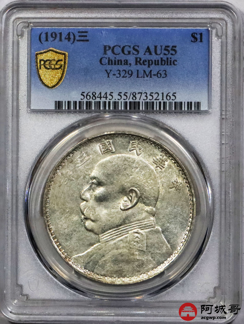 Lot:1845 1914民国三年袁世凯像壹圆银币一枚,三年八背 PCGS AU55评级编号:87352165