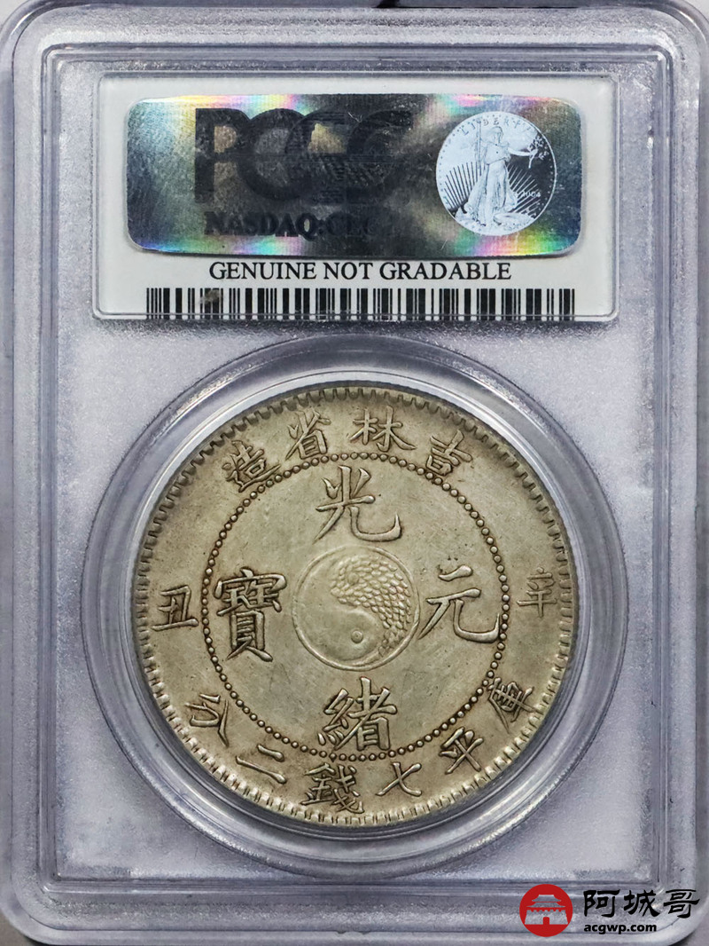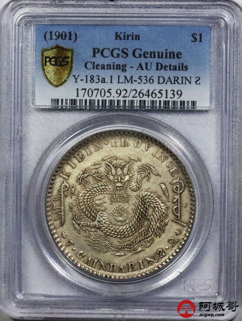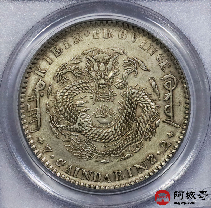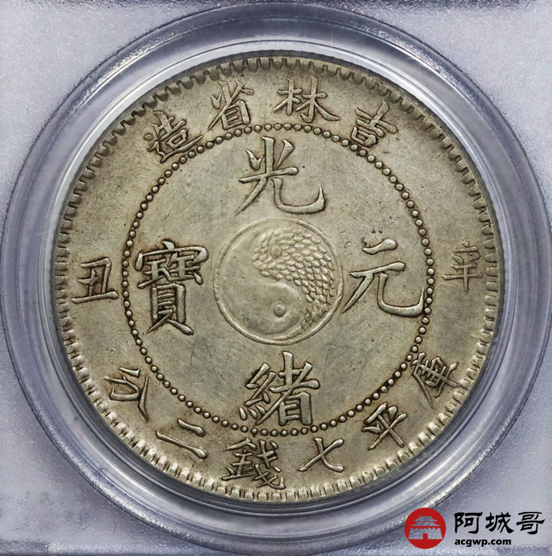 Lot:1410 1901辛丑年吉林省造光绪元宝库平七钱二分银币一枚,爆龙鳞,黄油底板 PCGS AU92评级编号:26465139