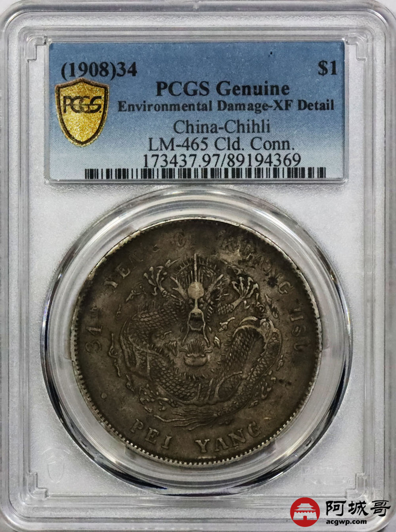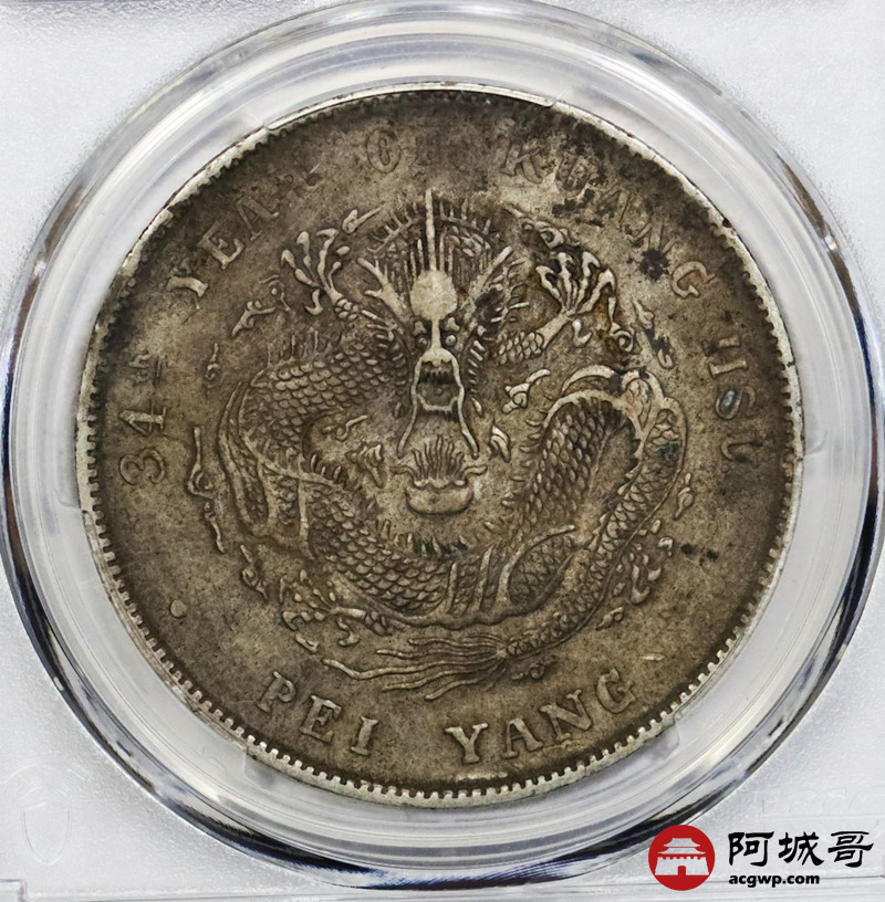 Lot:1745 1908光绪三十四年北洋造光绪元宝库平七钱二分银币一枚,原味 PCGS XF97 评级编号:89194369