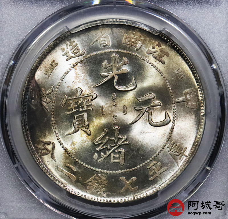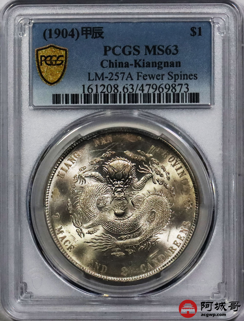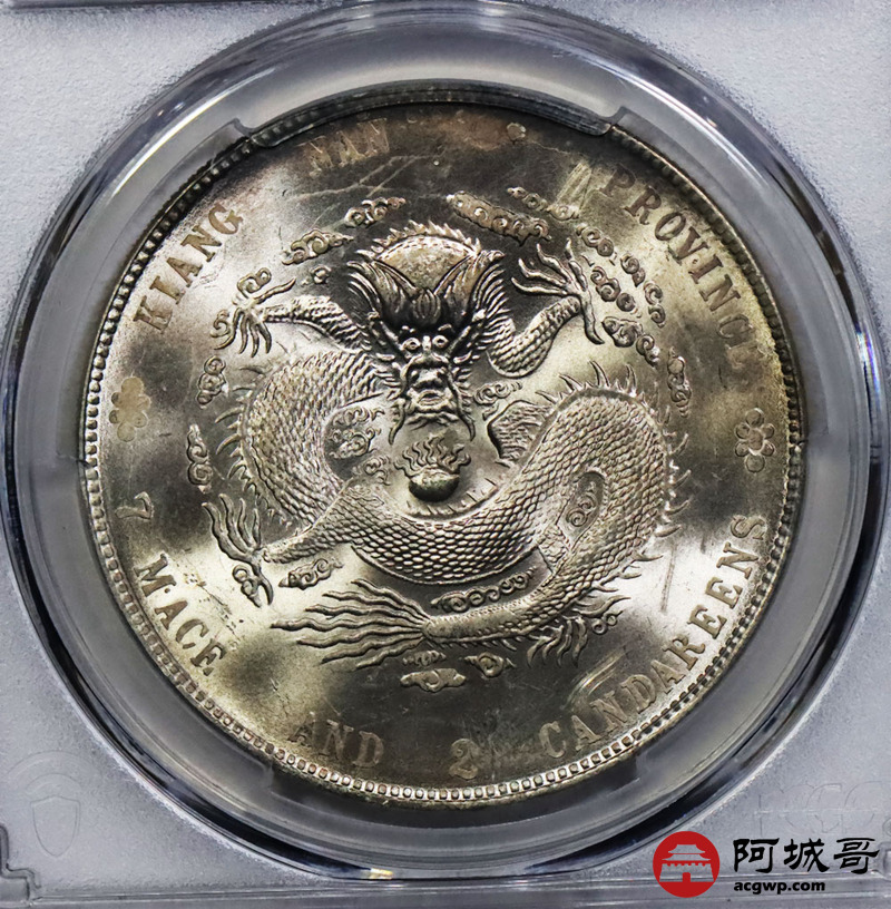 Lot:1366 1904甲辰年江南省造光绪元宝库平七钱二分银币一枚,丝滑粉光底板,状态一流 PCGS MS63评级编号:47969873