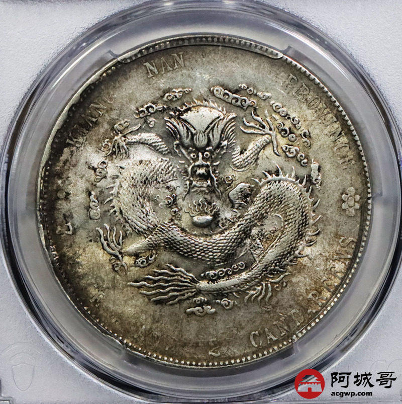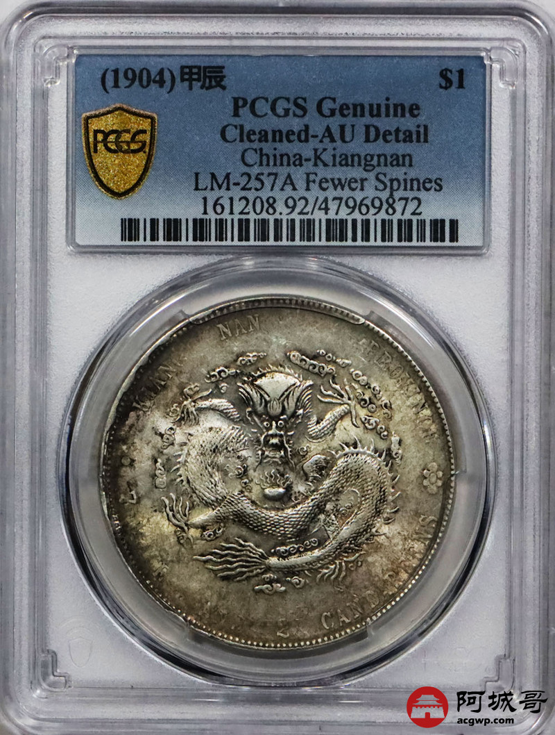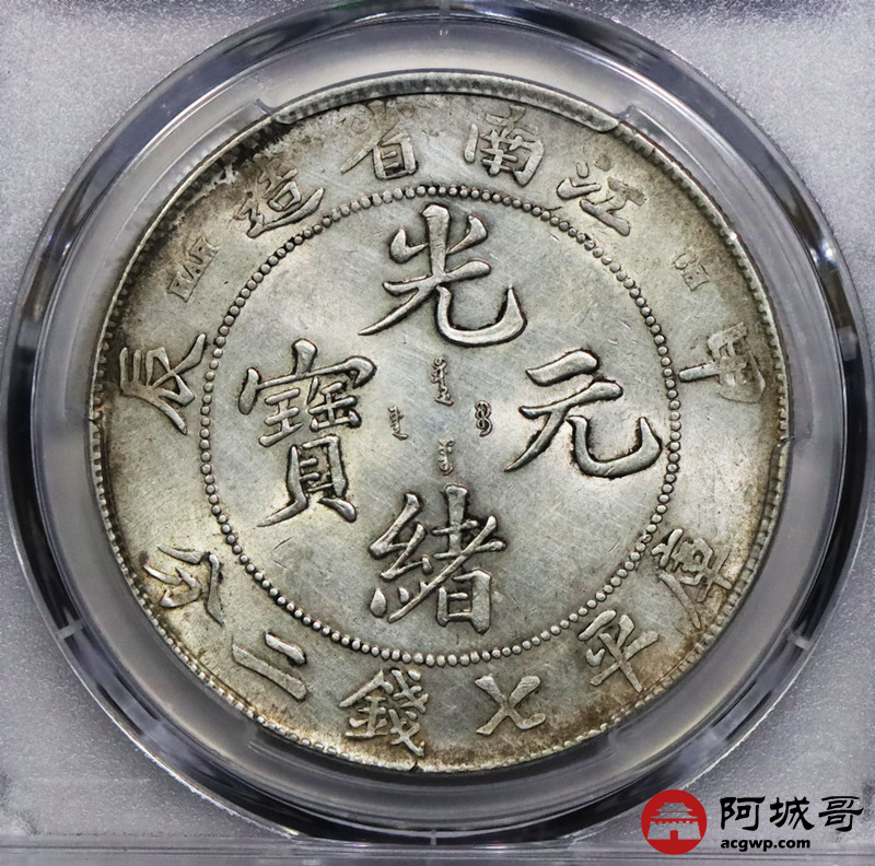 Lot:1371 1904甲辰年江南省造光绪元宝库平七钱二分银币一枚, 原味黄油底板 PCGS AU评级编号:47969872