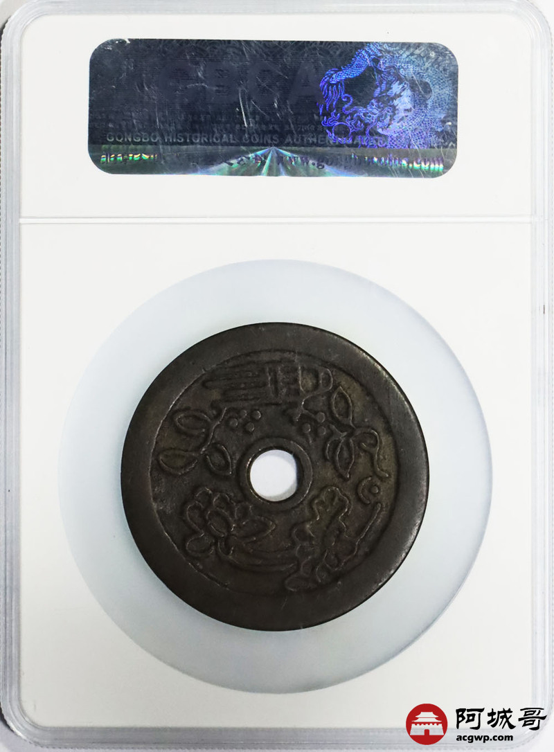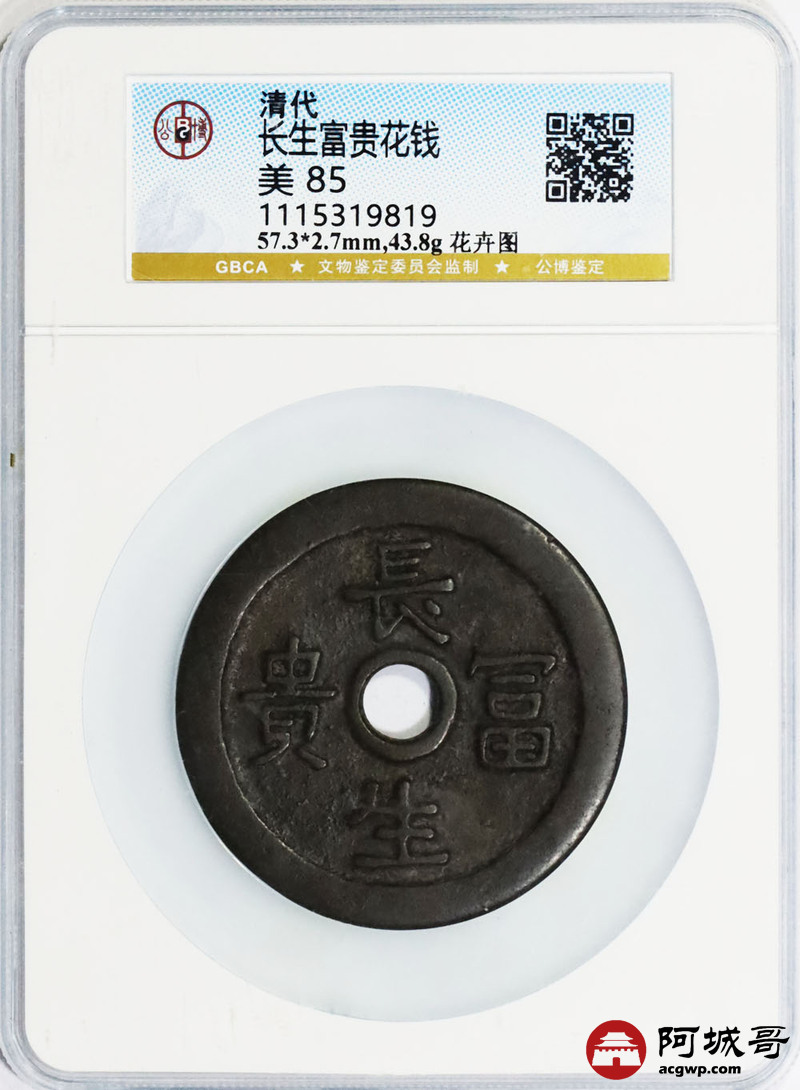 Lot:1544 清代-长生富贵铜花钱一枚,花卉图,公博 美 85评级编号:1115319819
