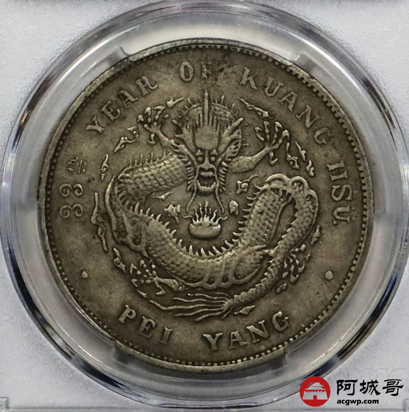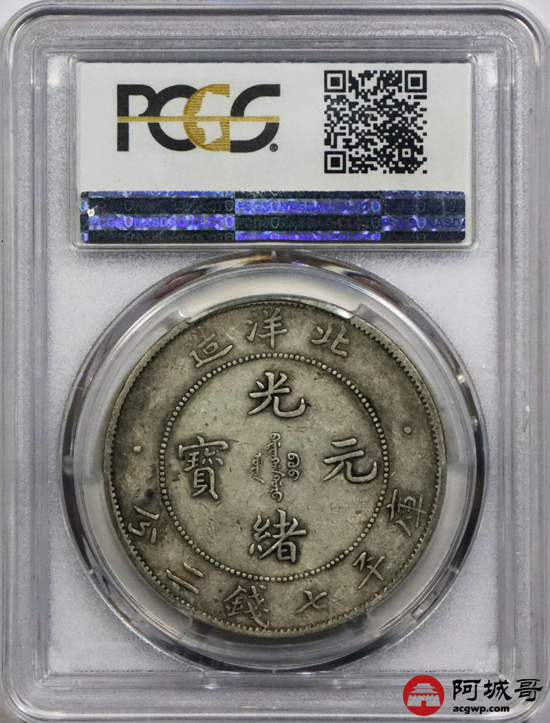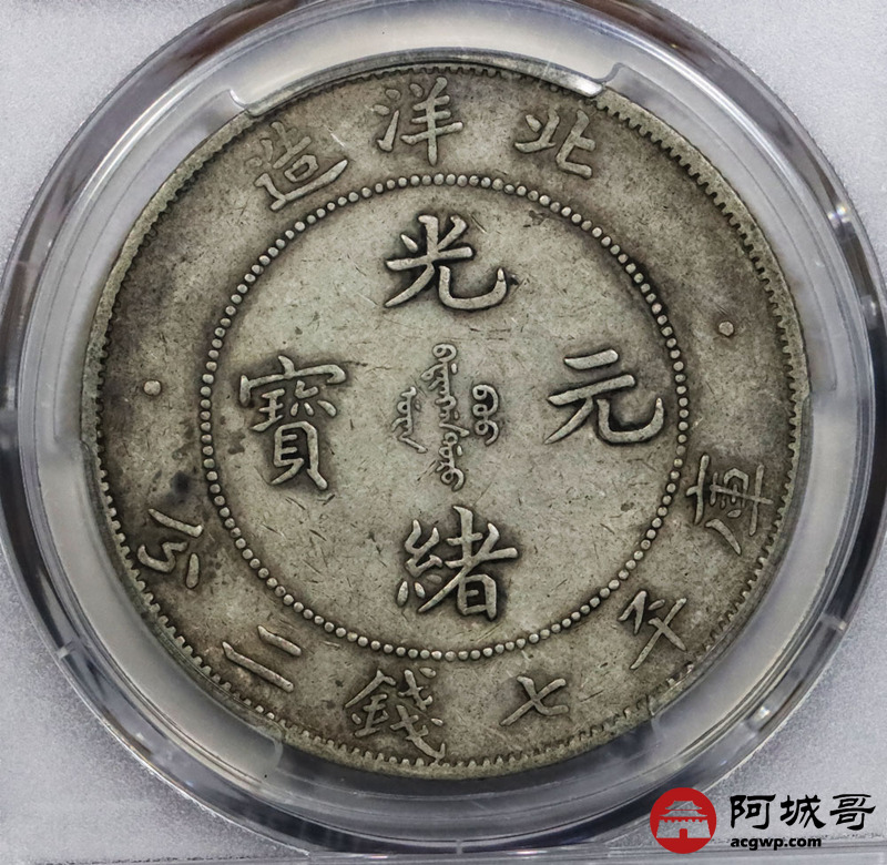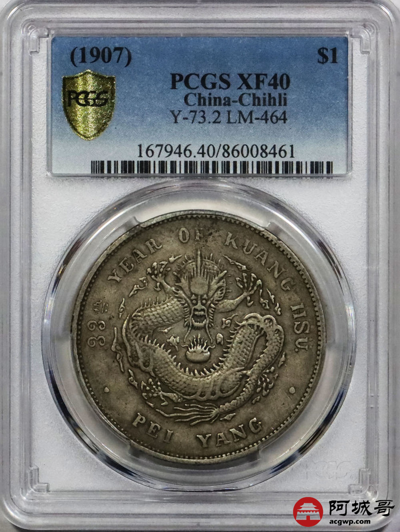 Lot:1765 1907光绪三十三年北洋造光绪元宝库平七钱二分银币一枚,原味 PCGS XF40评级编号:86008461