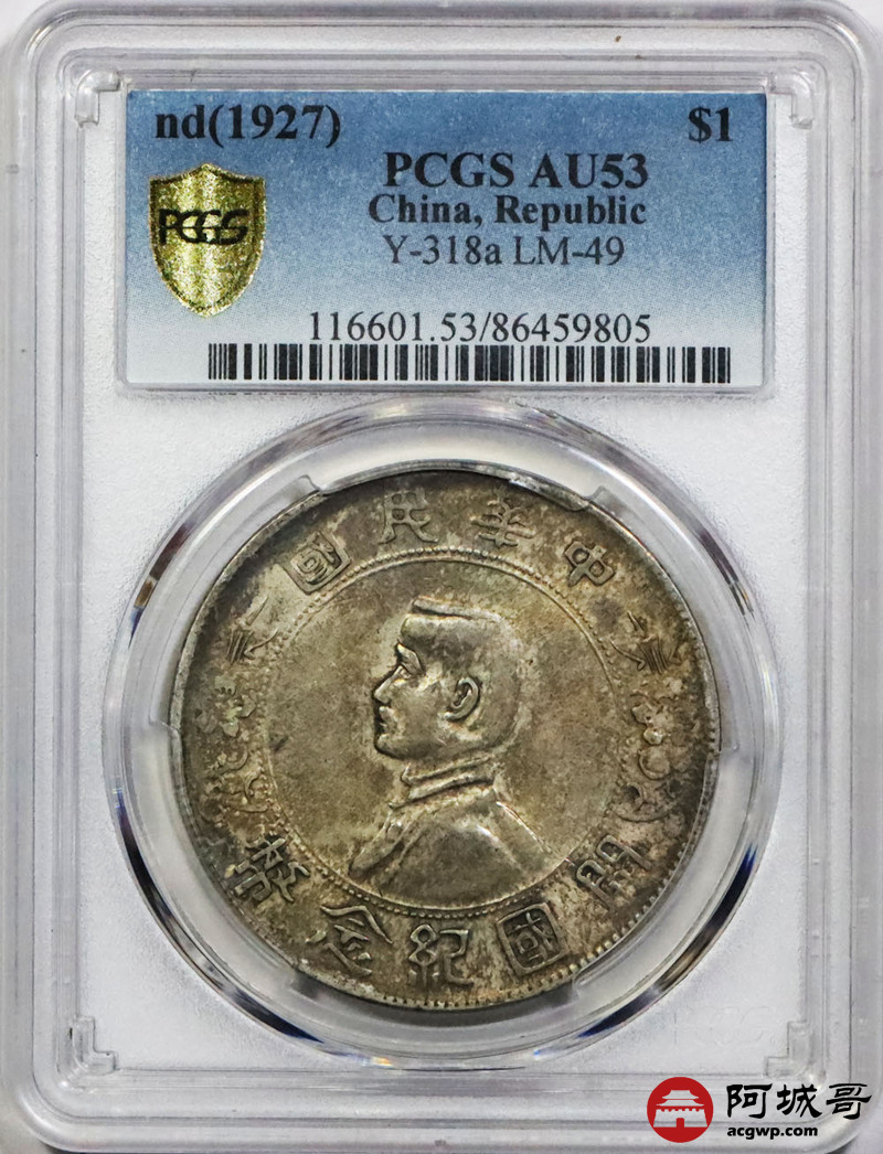 Lot:1435 1927年孙中山像开国纪念壹圆银币一枚,原味 PCGS AU53评级编号:86459805