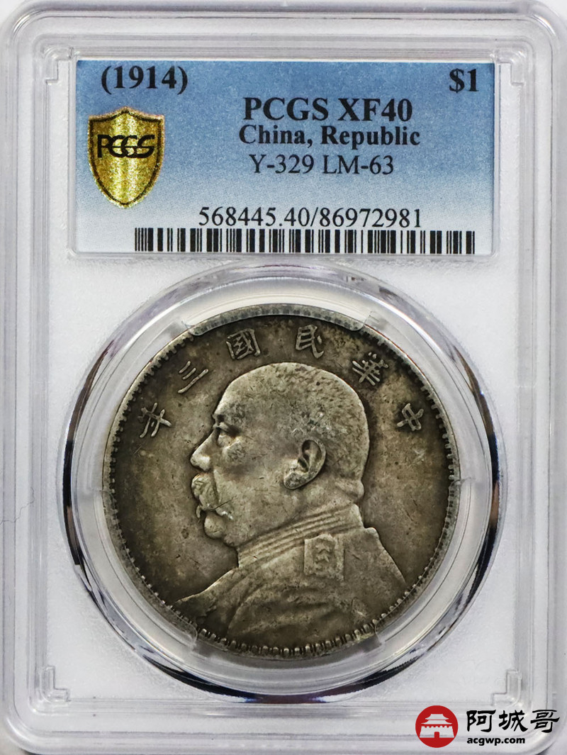 Lot:1858 1914民国三年袁世凯像壹圆银币一枚,原味 PCGS XF40评级编号:86972981