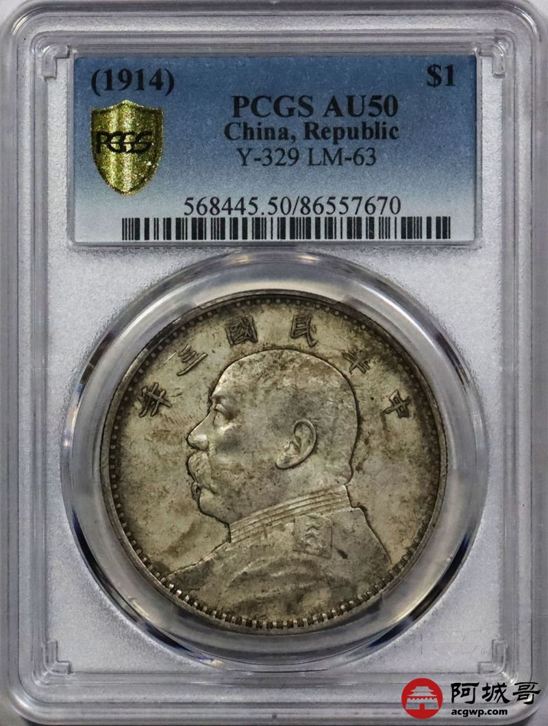 Lot:1846 1914民国三年袁世凯像壹圆银币一枚,原味 PCGS AU50评级编号:86557670