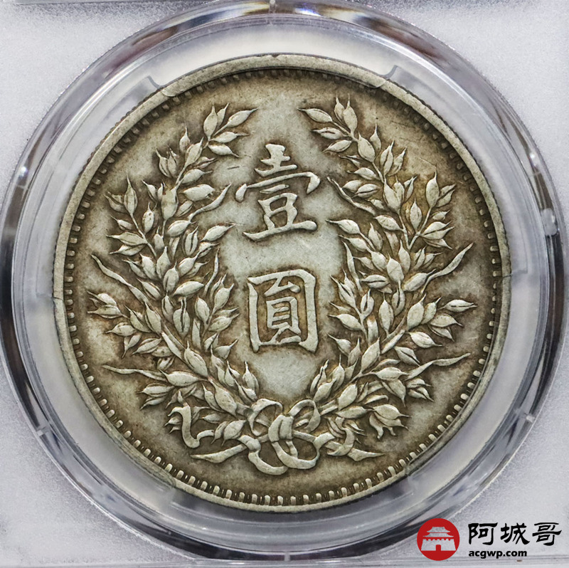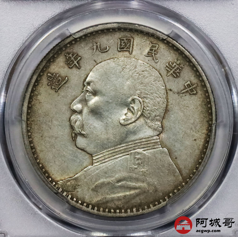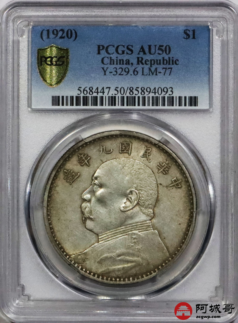 Lot:1849 1920民国九年袁世凯像壹圆银币一枚,原味,精发版 PCGS AU50评级编号:85894093