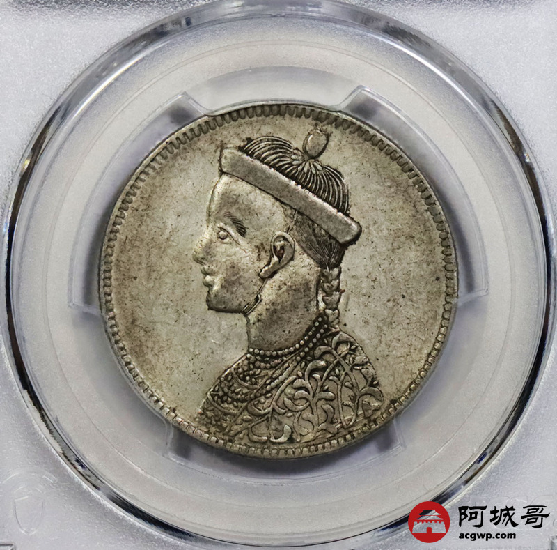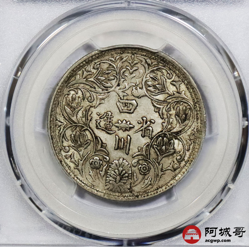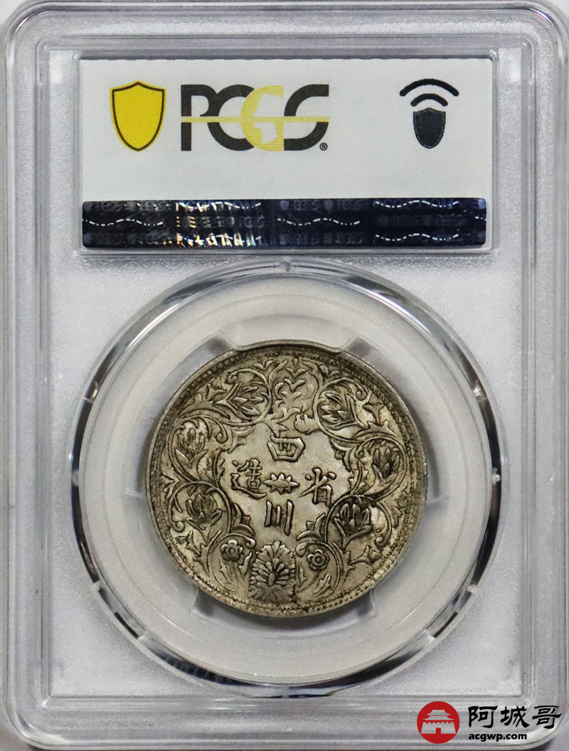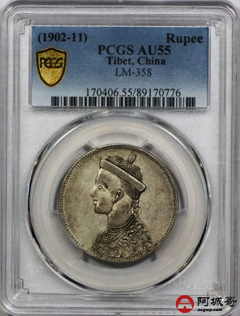 Lot:1462 1902-11年四川省造光绪 一期卢比银币一枚,无领横花,原味 PCGS AU55评级编号:89170776