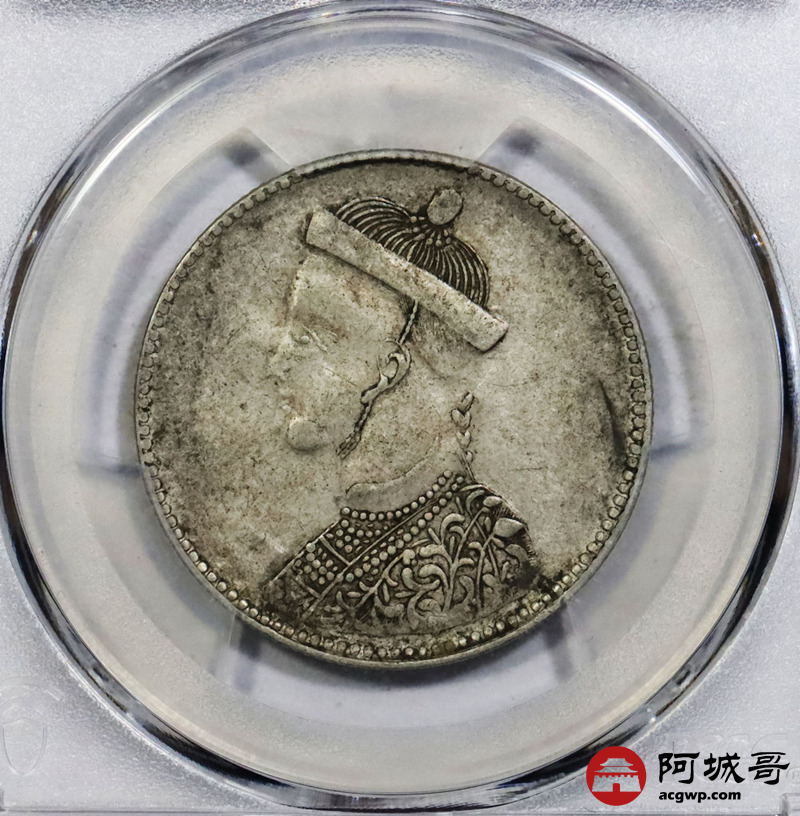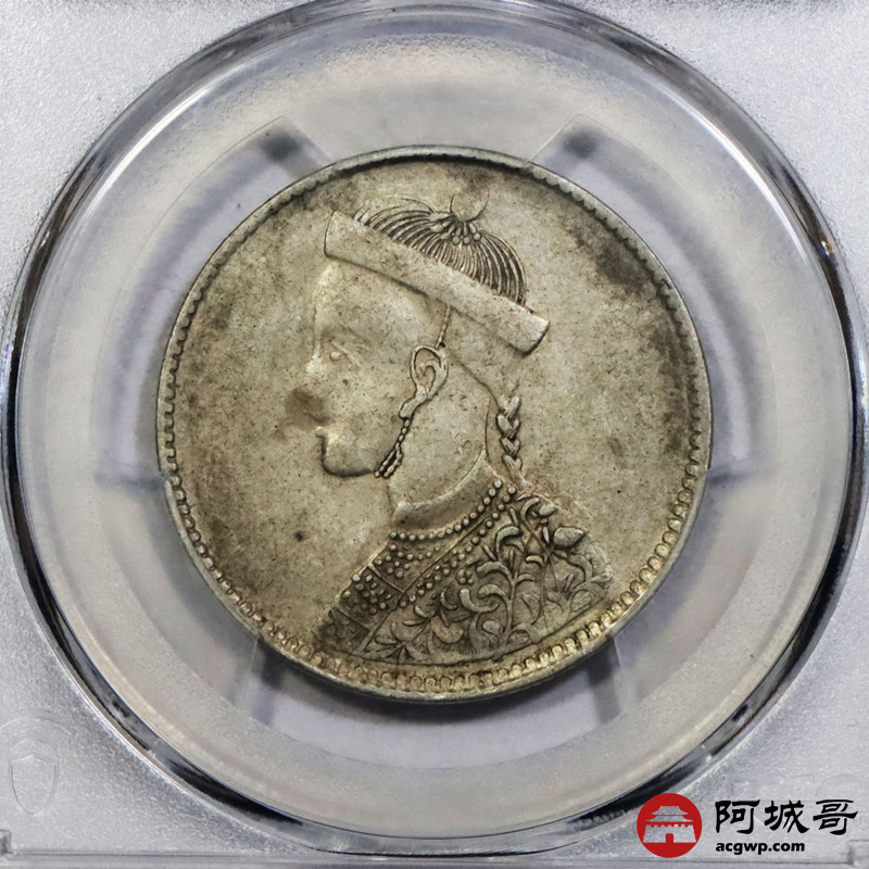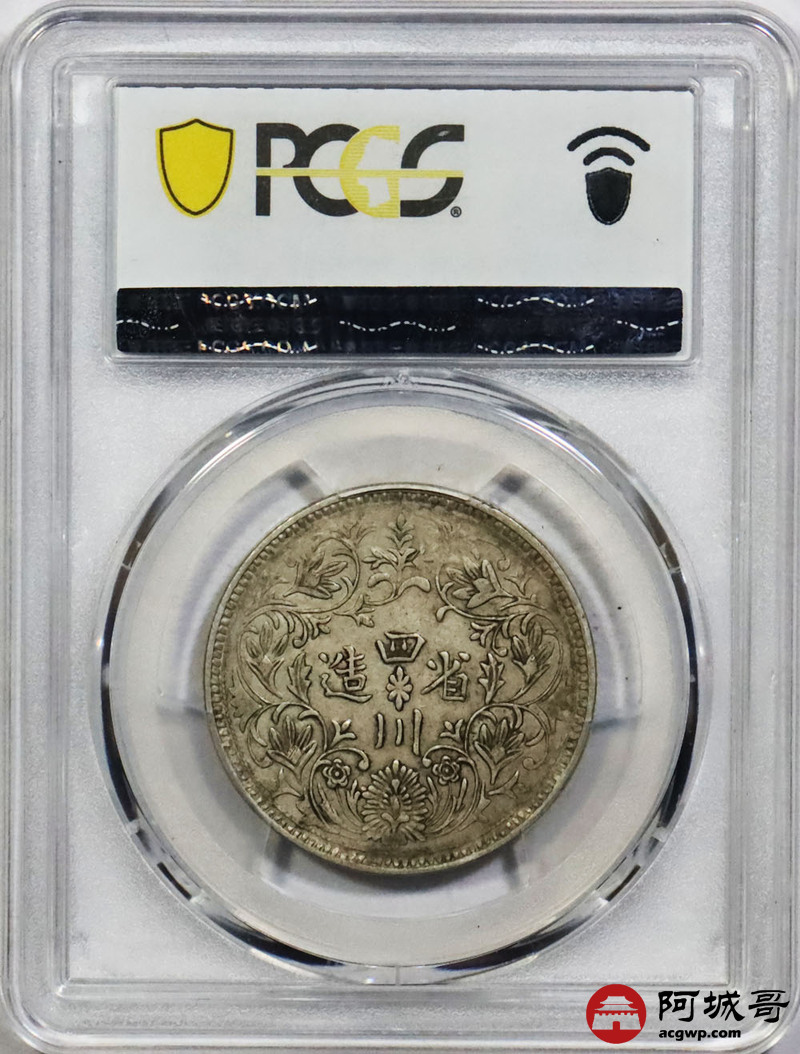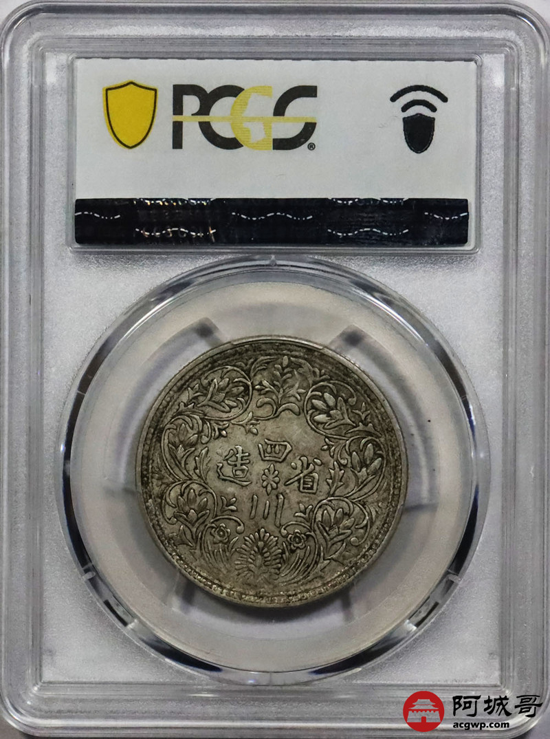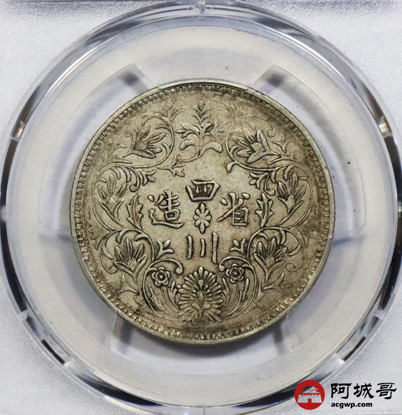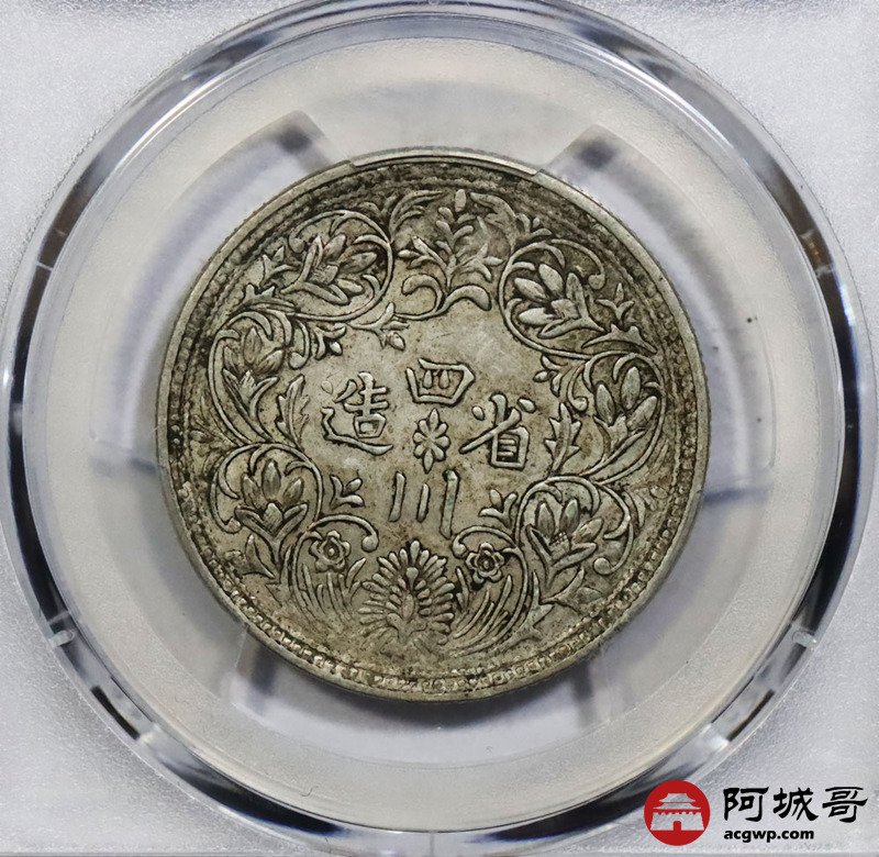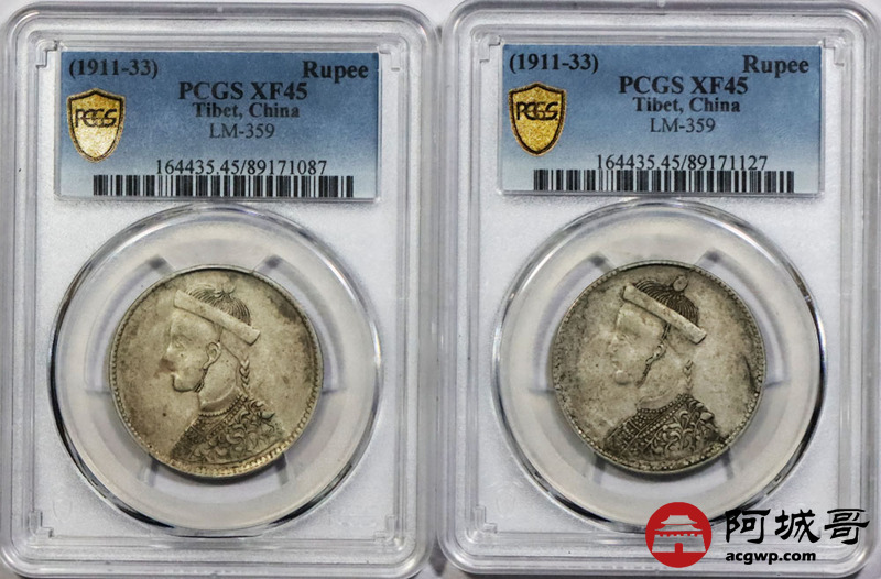 Lot:1469 1911-33年四川省造光绪一期卢比银币两枚,有领竖花,原味,均为 PCGS XF45评级编号:89171087-89171127