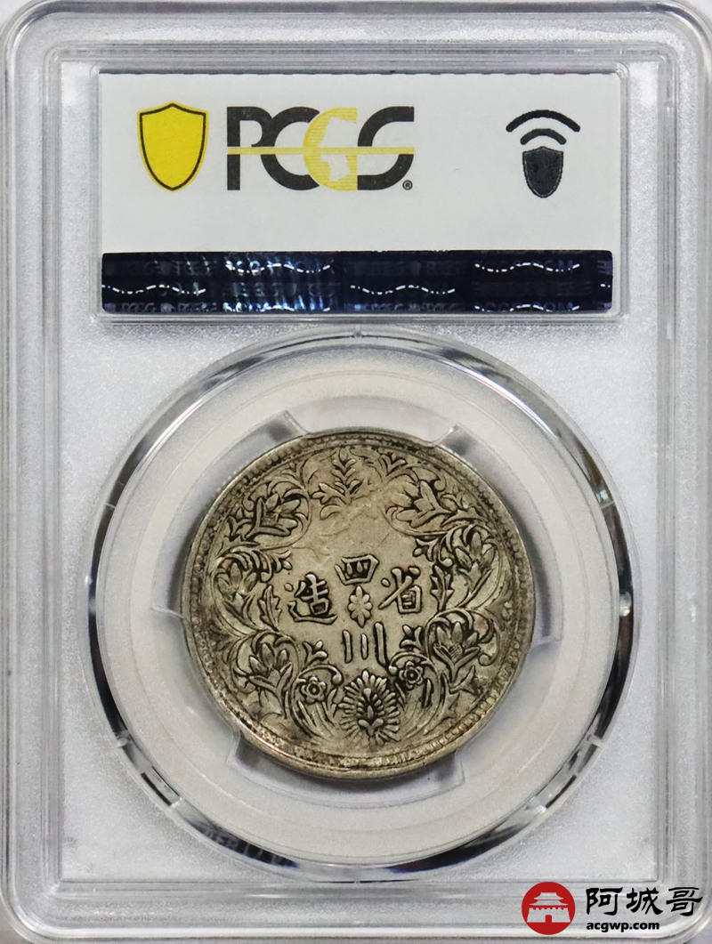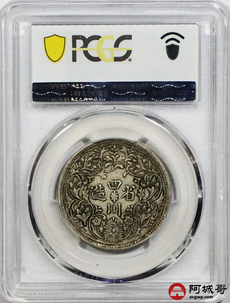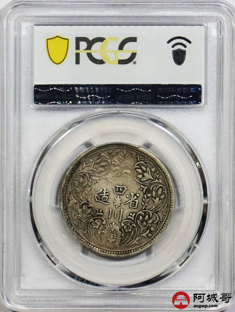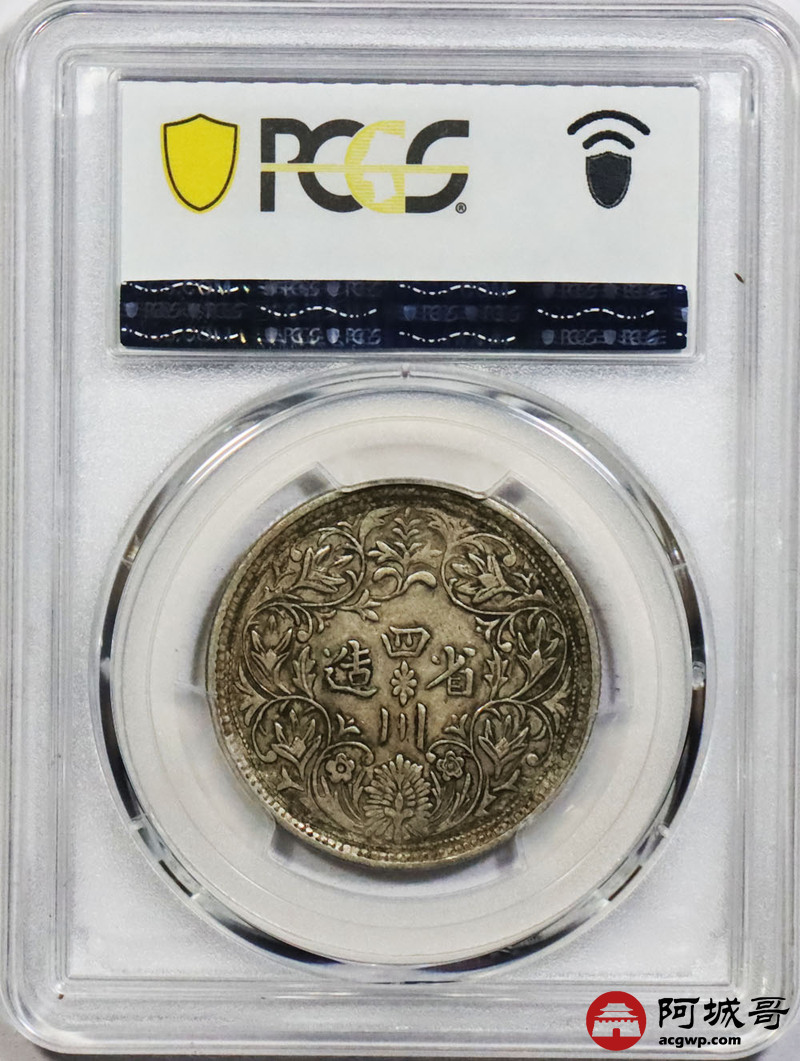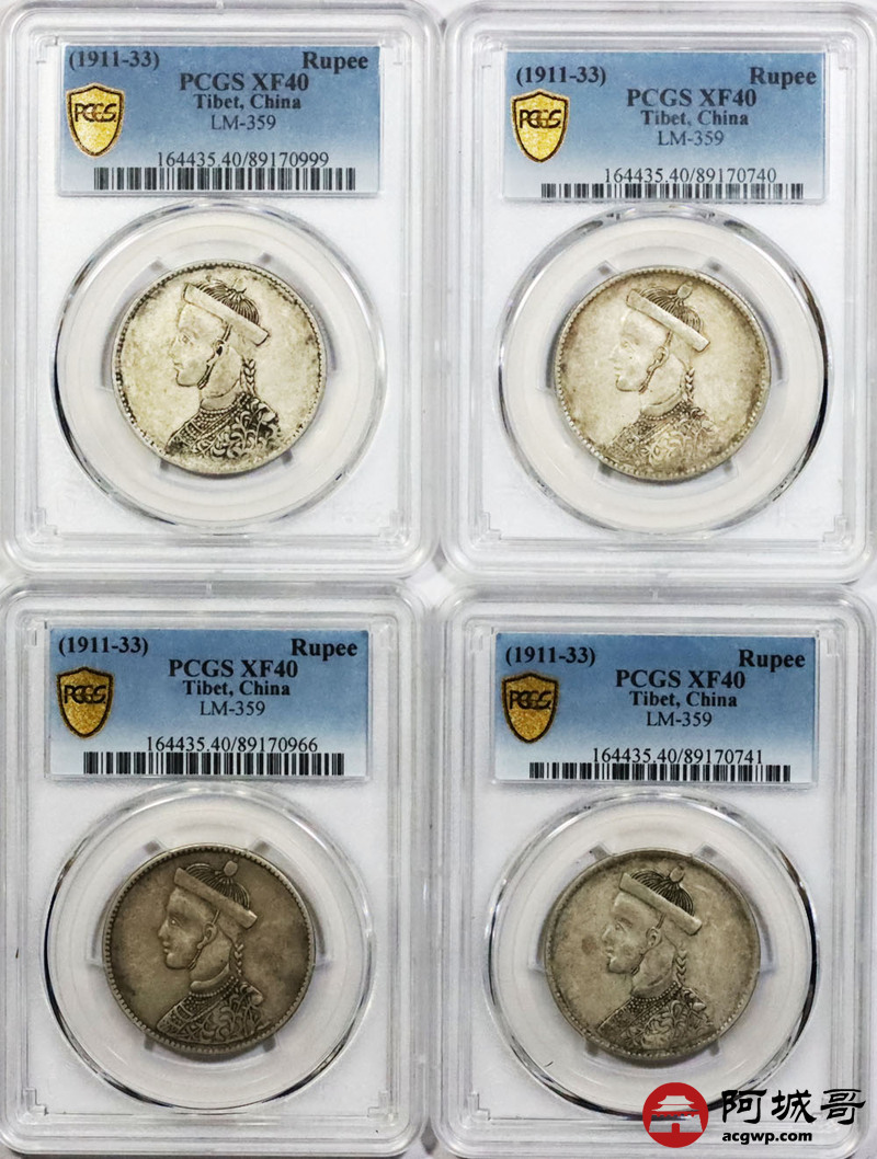 Lot:1472 1911-33年四川省造光绪一期卢比银币四枚,有领竖花,原味,均为 PCGS XF40评级编号:89170741-89170740-89170999-89170966