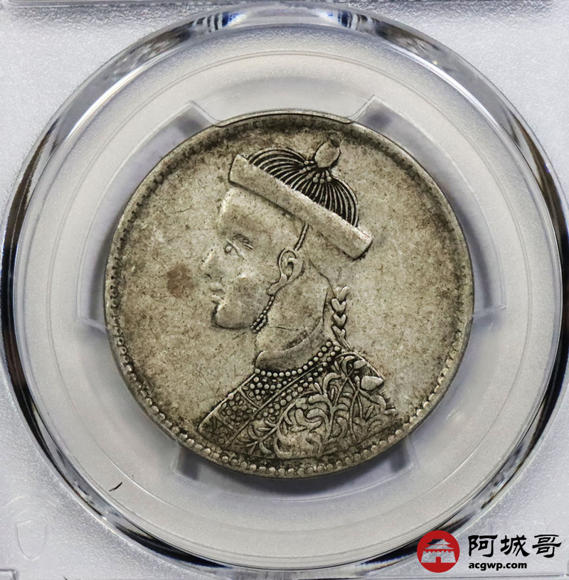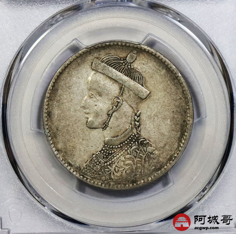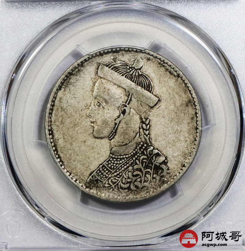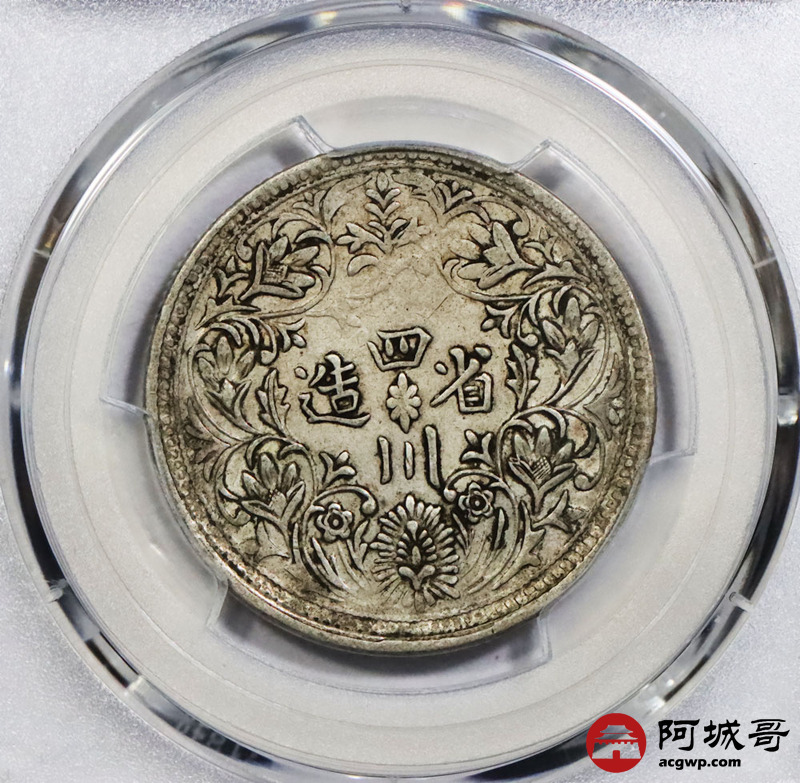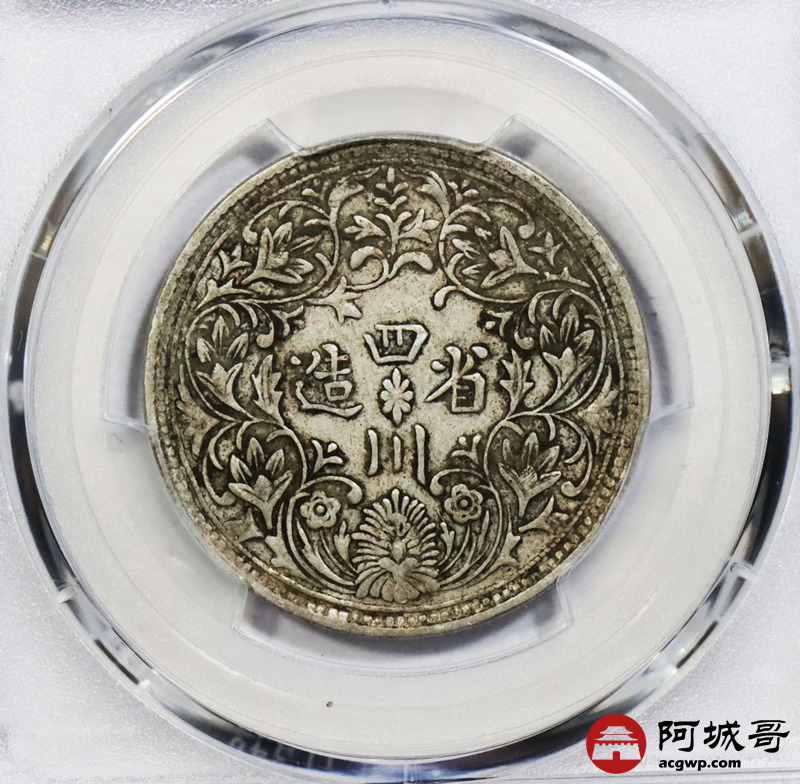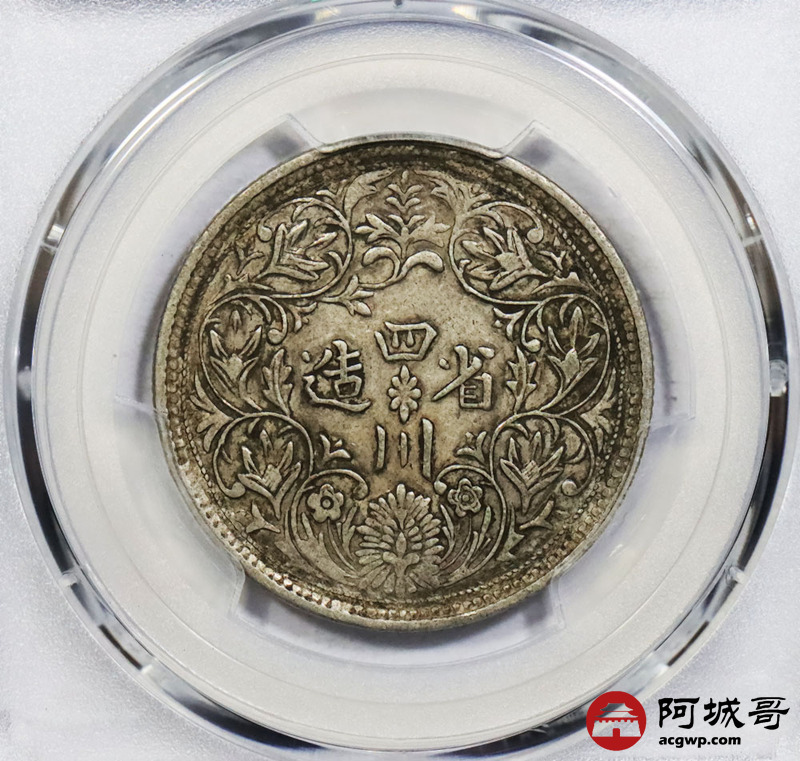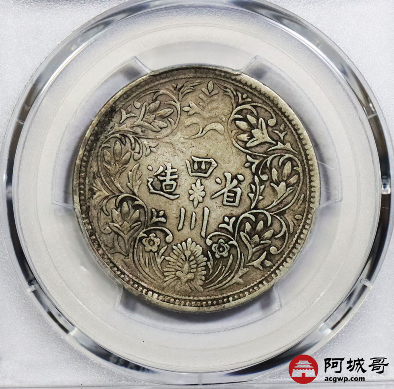 Lot:1472 1911-33年四川省造光绪一期卢比银币四枚,有领竖花,原味,均为 PCGS XF40评级编号:89170741-89170740-89170999-89170966