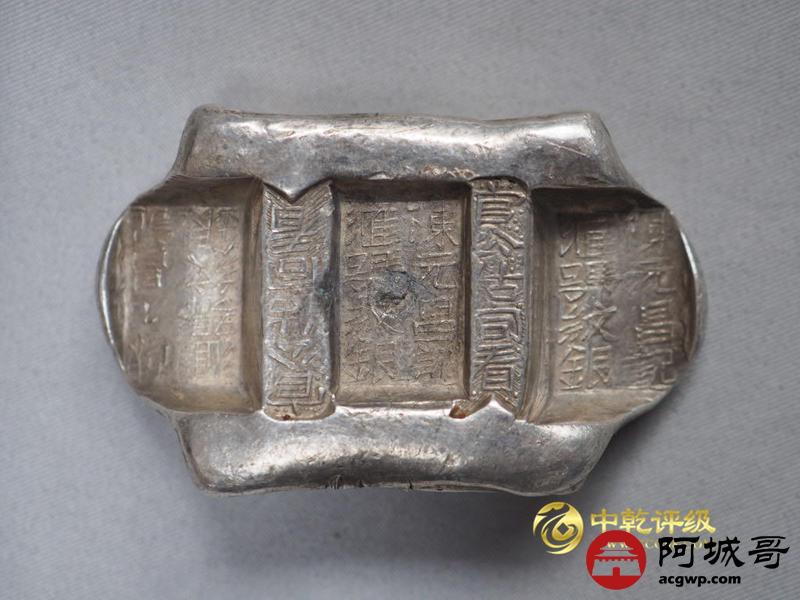 Lot:1534 清代-云南陈元昌记,汇号纹银一枚,官公估同看,188.6g 中乾评级 AU58评级编号:82021951