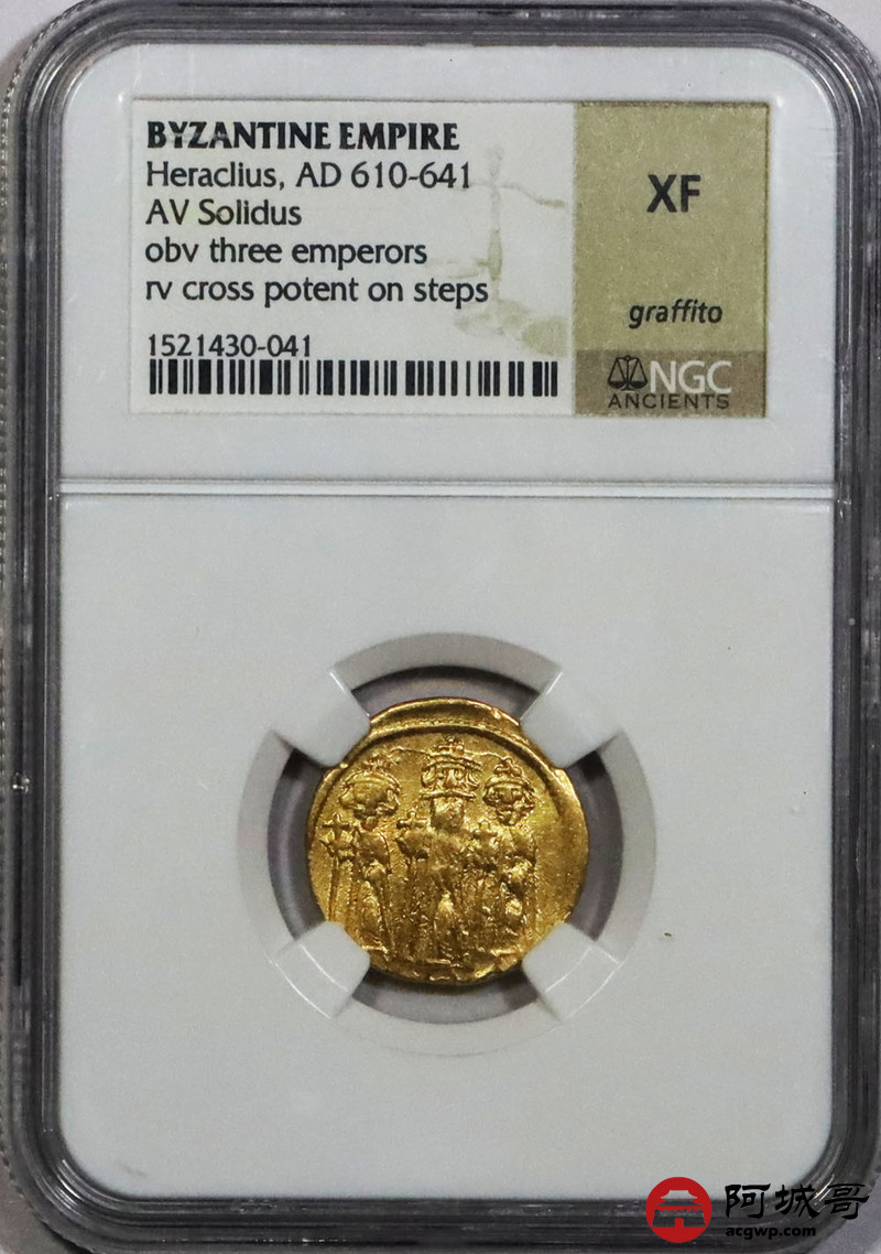 Lot:1390 公元610-641年拜占庭帝国金币一枚 NGC XF评级编号:1521430-041