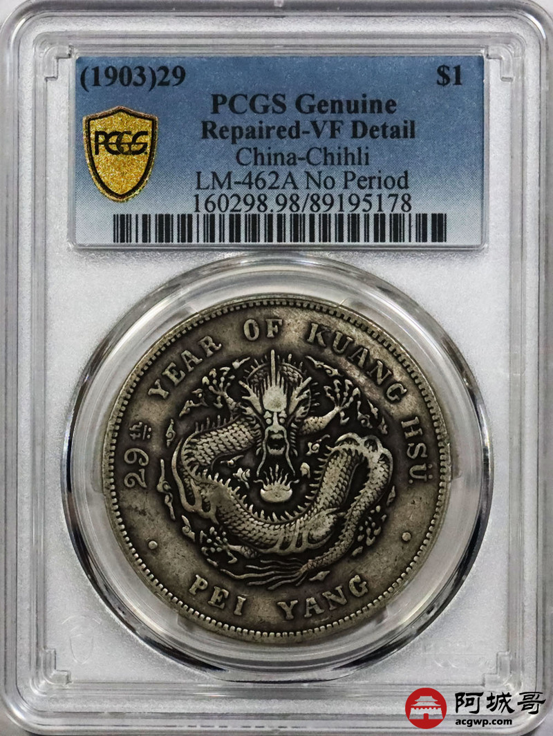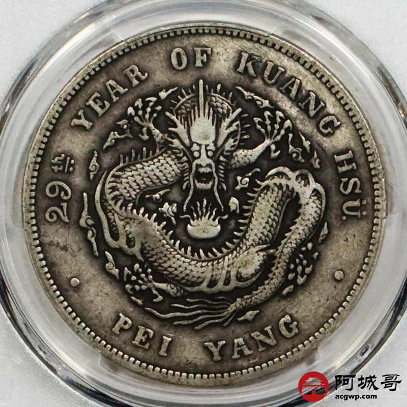 Lot:1732 1903光绪二十九年北洋造光绪元宝库平七钱二分银币一枚,原味 PCGS VF 评级编号:89195178