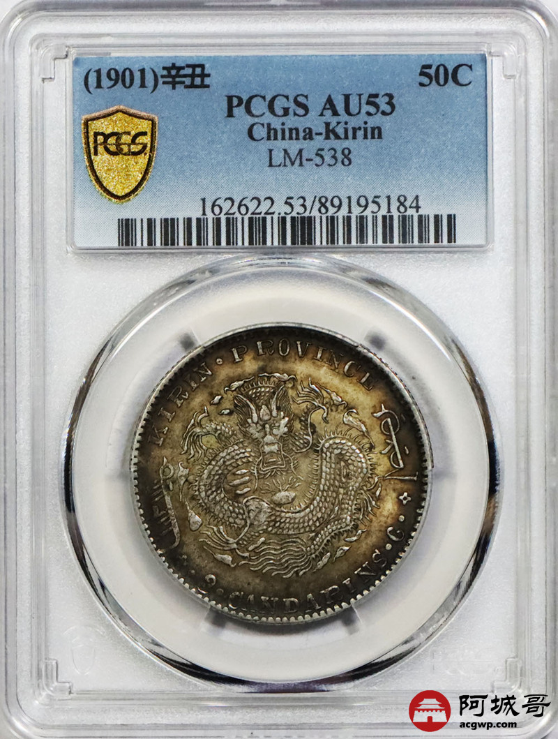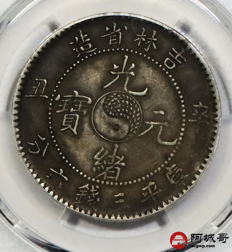 Lot:1407 1901辛丑年吉林省造光绪三钱六分银币一枚,浓郁酱彩包浆 PCGS AU53 评级编号:89195184