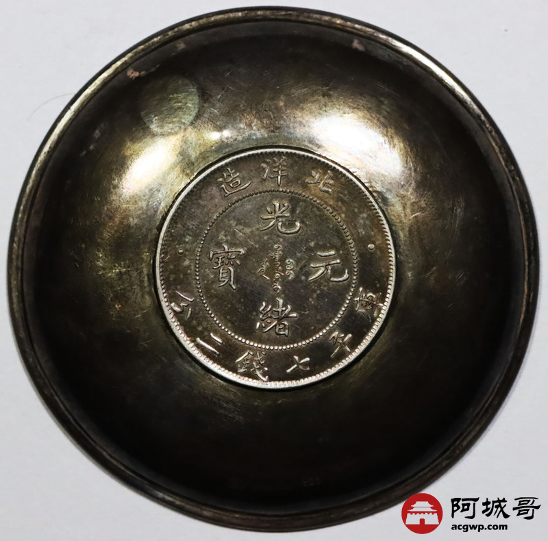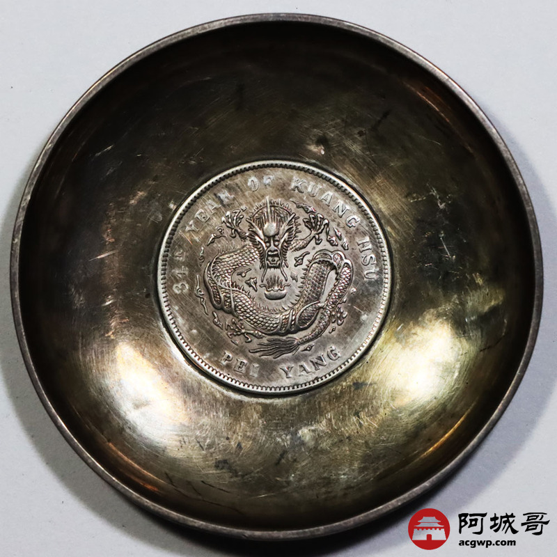 Lot:1541 清代-光绪三十四年北洋造光绪元宝库平七钱二分 工艺品银盘一枚